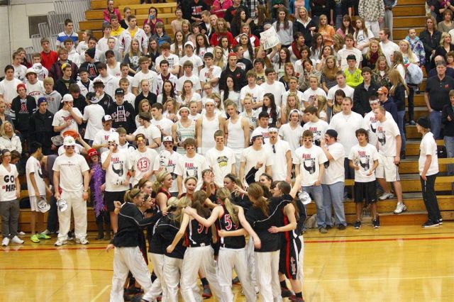 [But back to the basketball game. “The Red Hats,” as so identified in the original game post, upon closer inspection of the staff photographer’s efforts, appear to be basketball moms!]