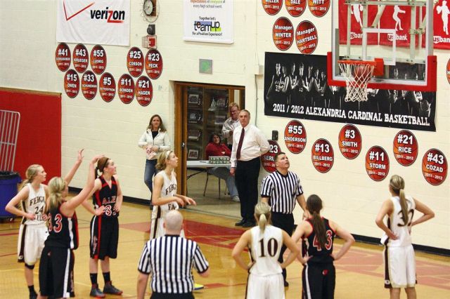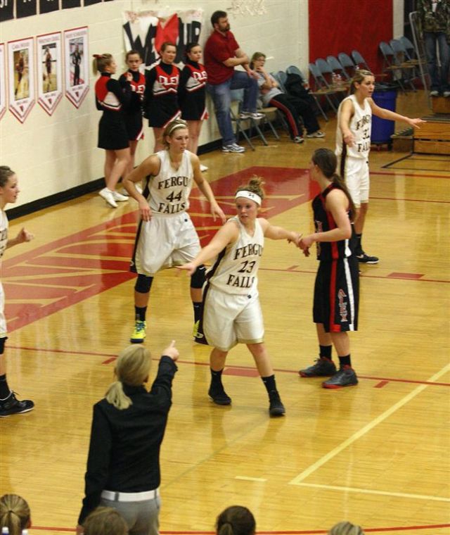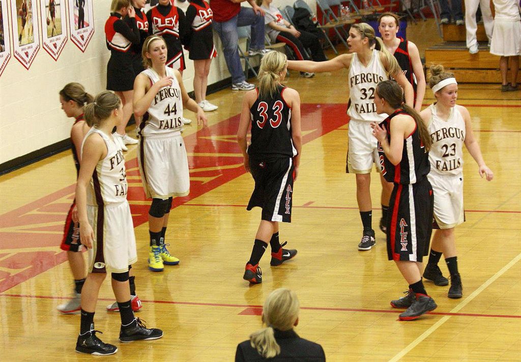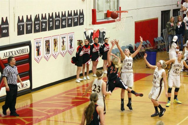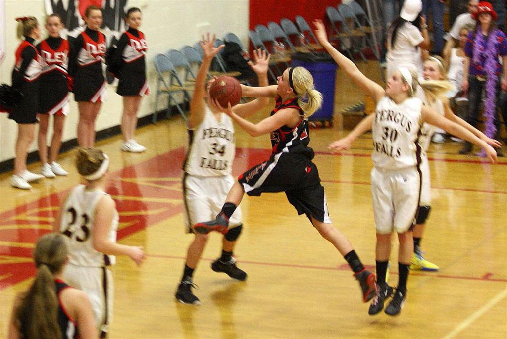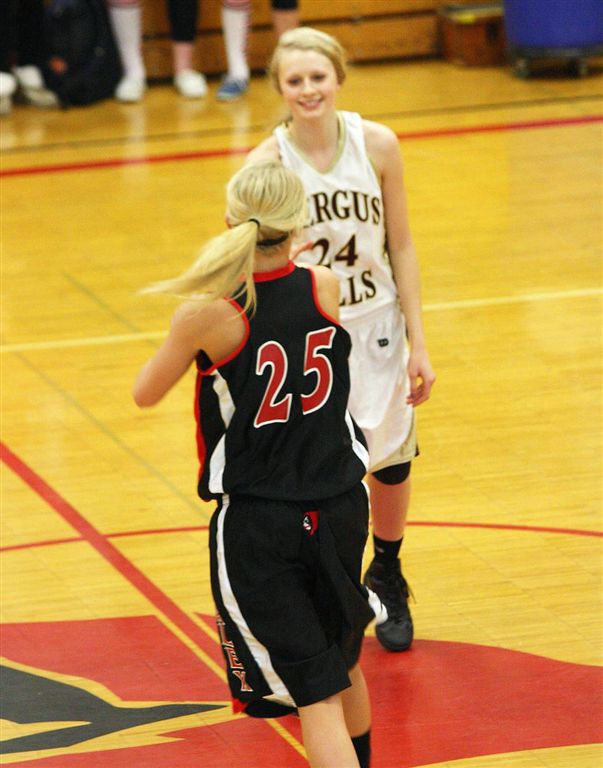 The staff photographer resides on the north side of the JHS gym; I on the south. This assures complete and total coverage for our constituents. The photos in this post are from the north side – of the Fergus Falls girls’ basketball game.
