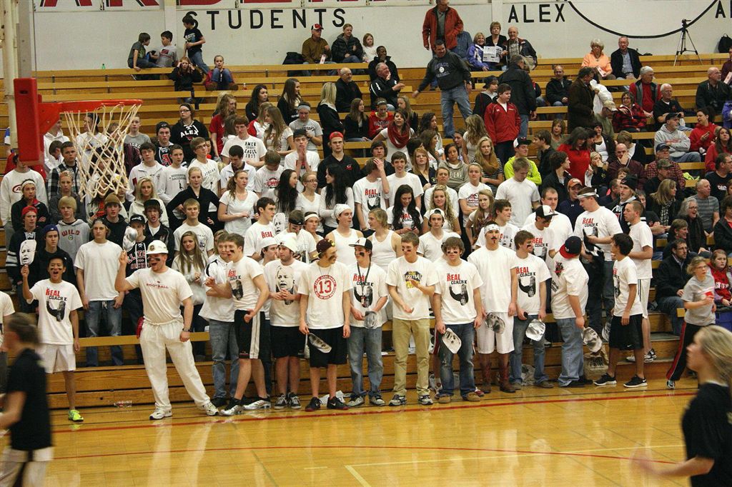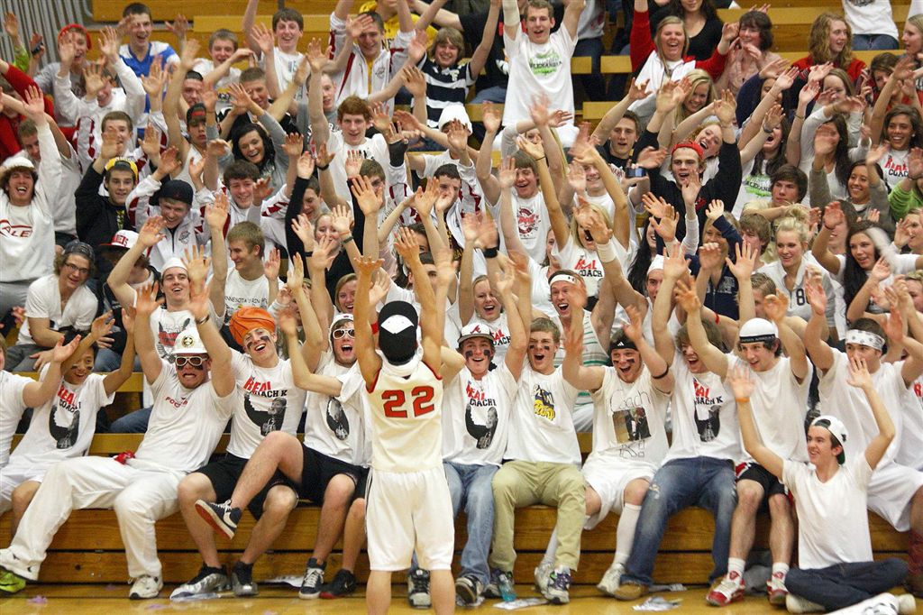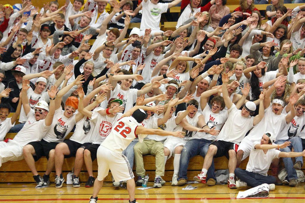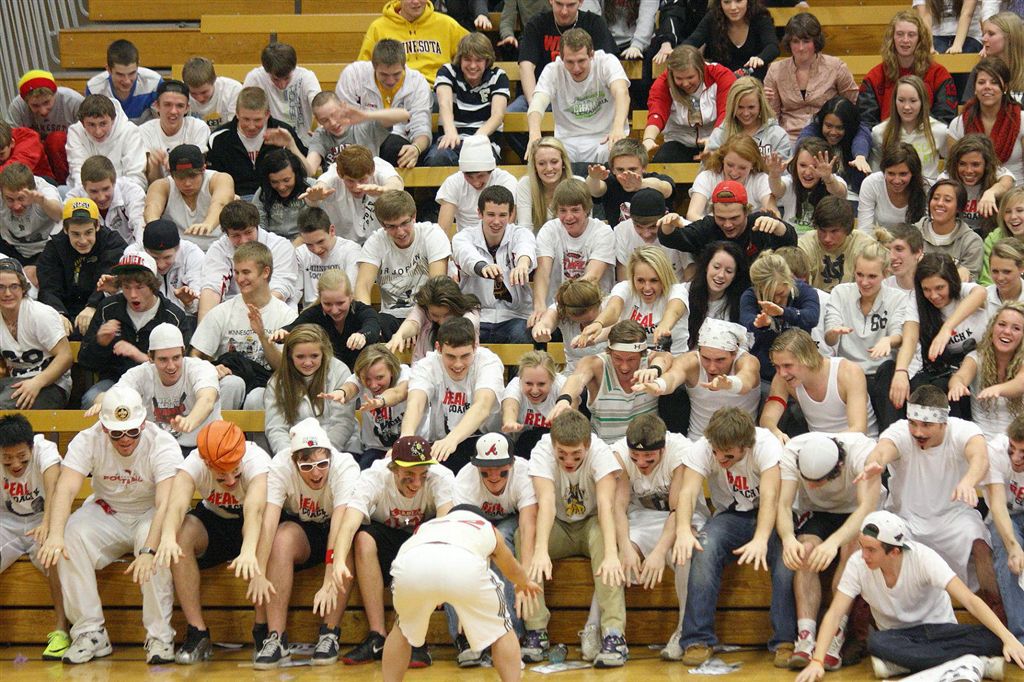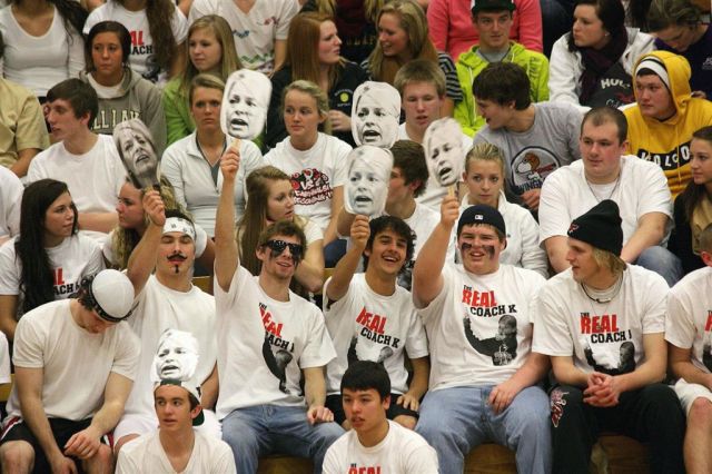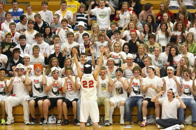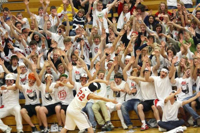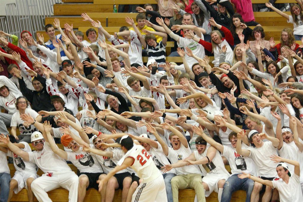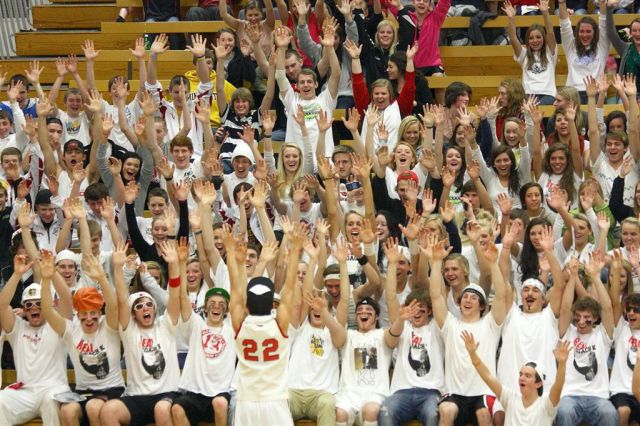 [The student section. Through the superior education they receive at JHS, they are able to read the sign above their section so they know where to sit.]