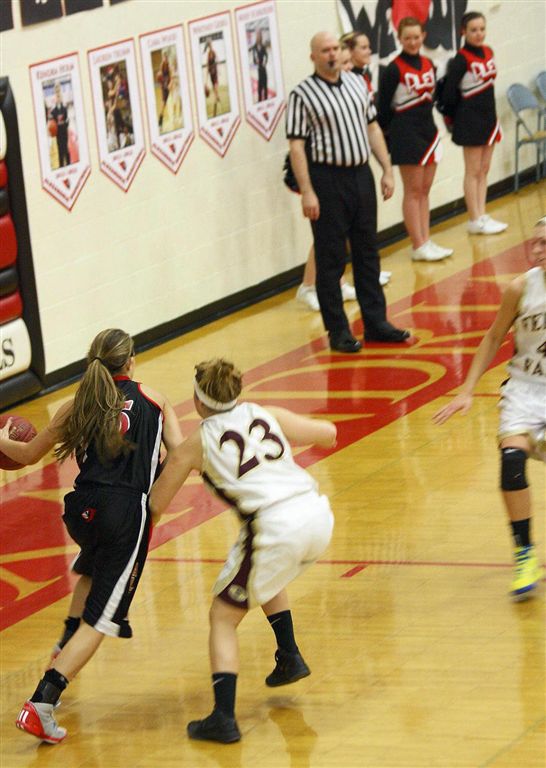 [Toward game’s end, Cara took out her frustrations about being beat upon the whole game with a beautifully aggressive drive to the bucket – everything was great except at the end she just didn’t have enough gas left in the tank to finish the play.]
