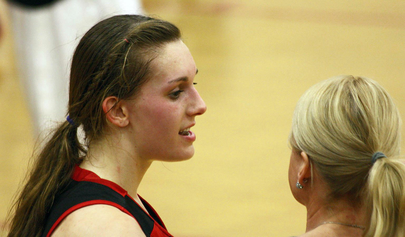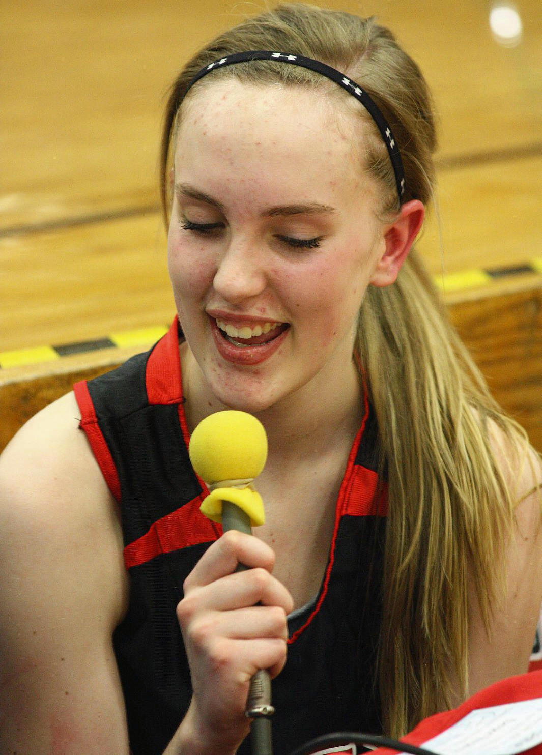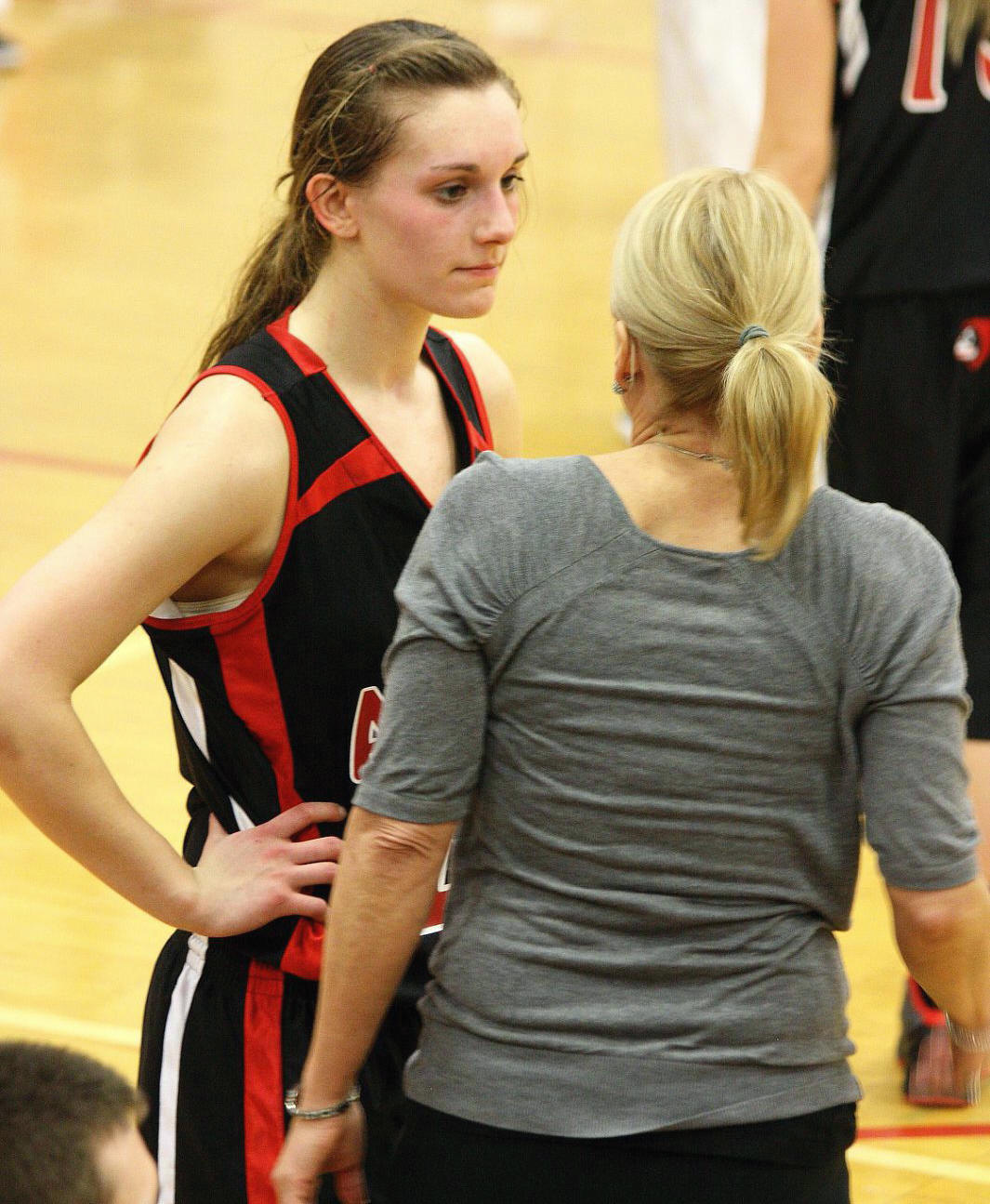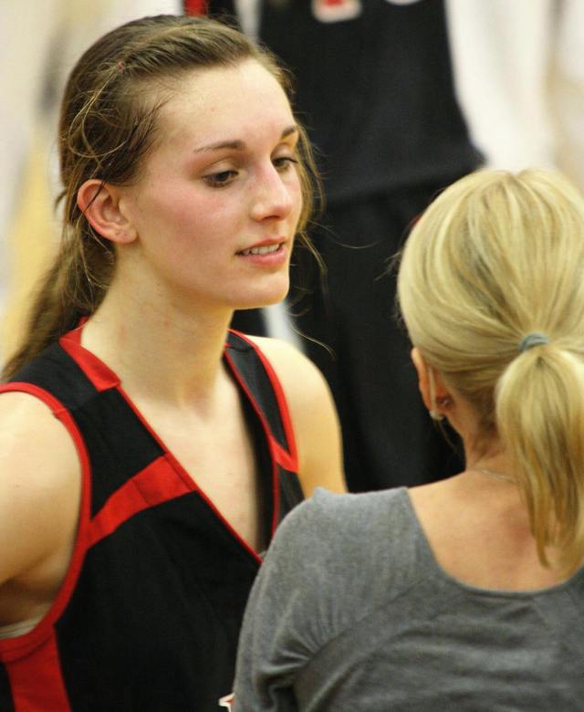 [Whitney towers above her teammates.]