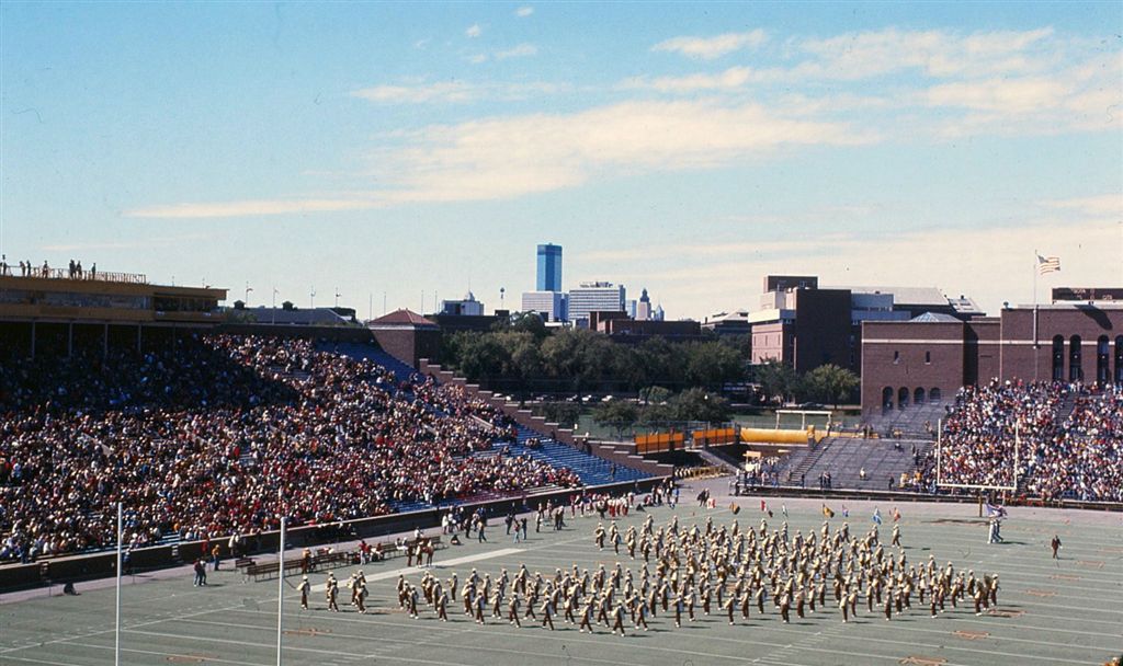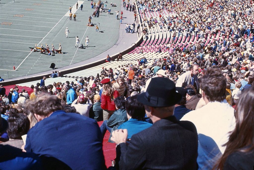 [Gopher game at Memorial Stadium in 1974. The IDS Tower was the Minneapolis skyline.]