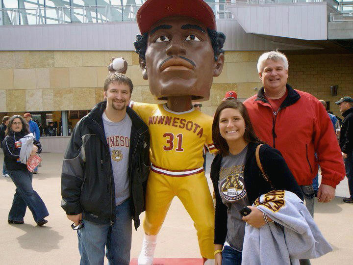 [Brother Cam (r) with “Dave Winfield” at the new Twins stadium.]