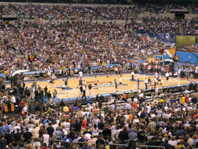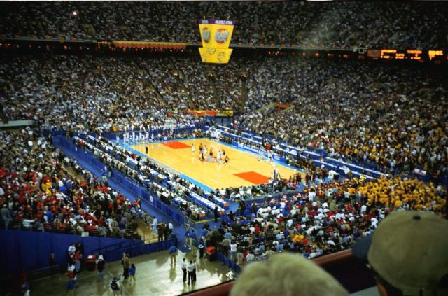 [Hinkle Fieldhouse, Butler University, Indianapolis. Where the Indiana state tournament used to be held, and where “Hoosiers” took place.]