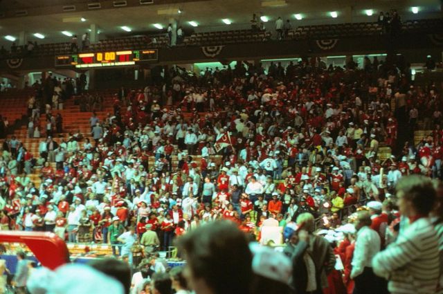 [With Final 4 regulars, Mary, Gus, and Dan in New Orleans, ’93.]