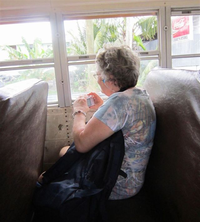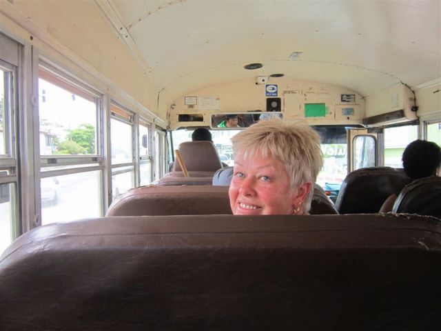 [Hi! We really enjoyed our company on the bus. They obviously figured out we were tourists! Ha! So, one guy, who once lived in Chicago and is in the import/export business, gave us a nice commentary on what we were seeing – then wished us a good cruise when he got off. Then another fellow picked up the tour guide banter until he got off. Then an older couple got on – and similarly wished us a nice visit. One of the highlights of the whole trip!]