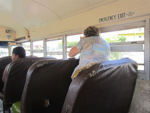 [Here I have to give all the credit to The Biddies. Folks always raise concerns about stepping outside your comfort zones – or in this case, leaving the cruise ship compound once on land. As soon as you do, you are put upon by all manner of vendors hawking various goods and services. The transportation guys were offering tours of the city at $15 a head. Now The Biddies, based on their vast experience in commerce, a/k/a, shopping, didn’t think that was a very good deal. So they went back to the little shops inside the compound and made some inquiries. A woman with a small gift shop advised them that if we took a left outside the compound, walked several blocks and crossed a small bridge, took a left and walked another couple of blocks, we could ride a city bus all around the city and return to our starting point for $1. That was all The Biddies needed to hear! So even with her bad foot, the supervisor charged off in search of a bus. The following photos were along the route.]