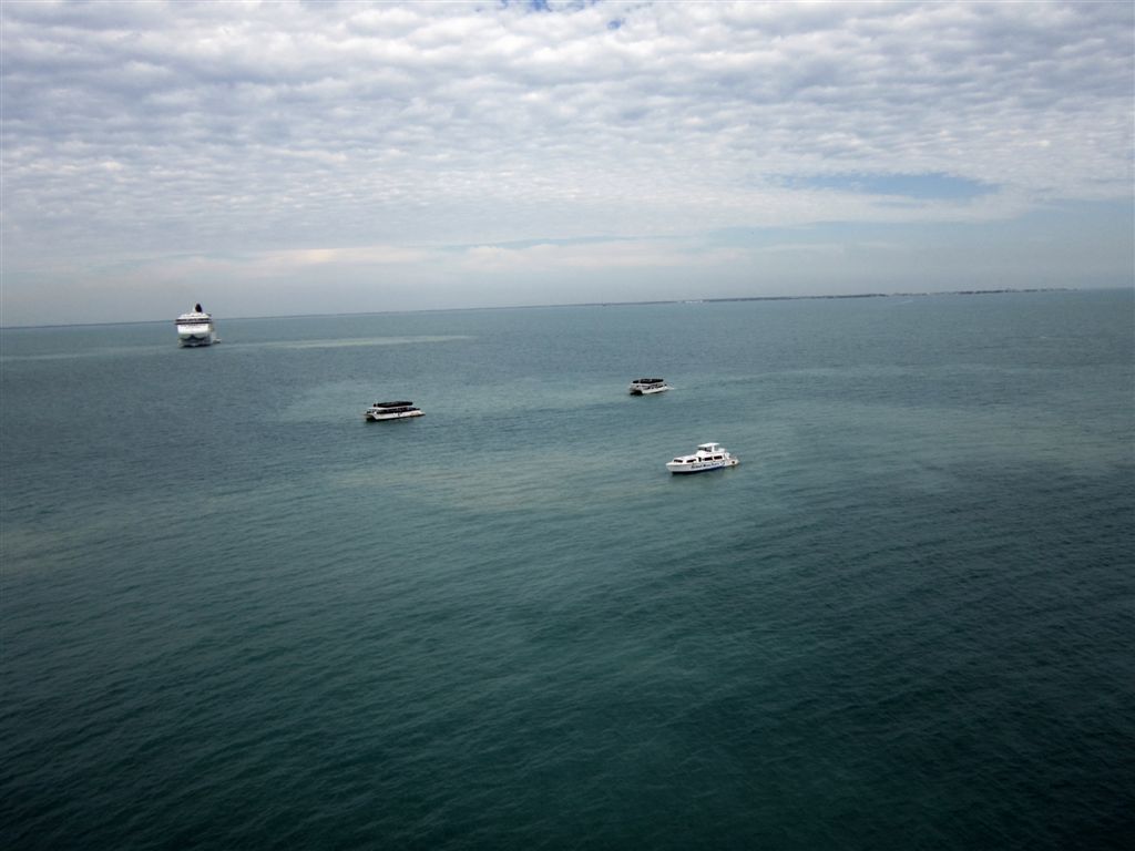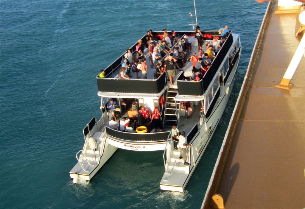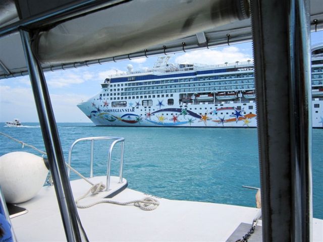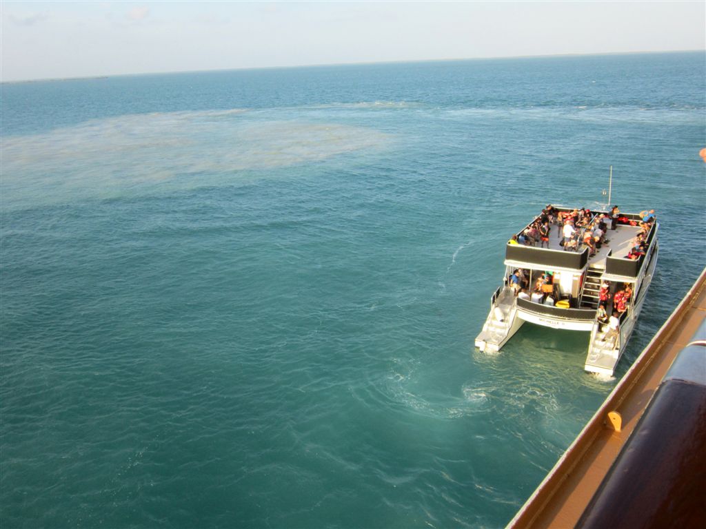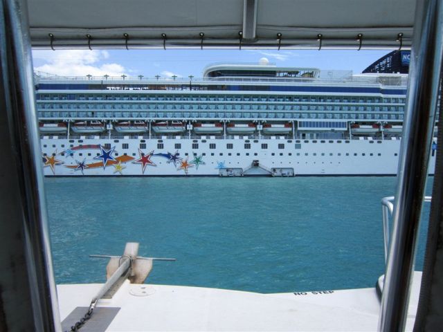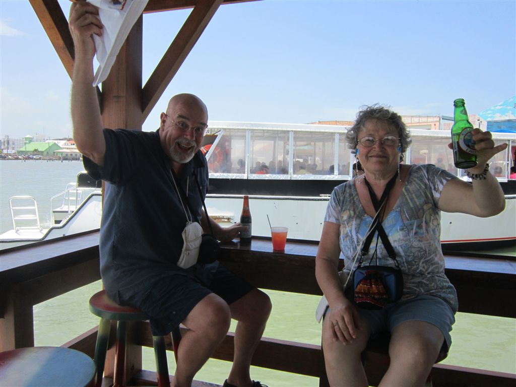 Belize . . . and thank you. Belize City was the only stop where a ship does not having docking access. Passengers are “tendered” to land from from offshore anchorage postions. This reminded us, of course, of cruising the Chain on the Moby Obie. 🙂 At this point it’s probably a good idea to remind these stops exist almost entirely for the tourist trade. They are not wealthy places. Ruth advised us when we were in Roatan that the electricity goes out every day – which makes it pretty difficult for refrigeration and air conditioning. So every place we landed, we were very much the object of the locals’ commercial attention.