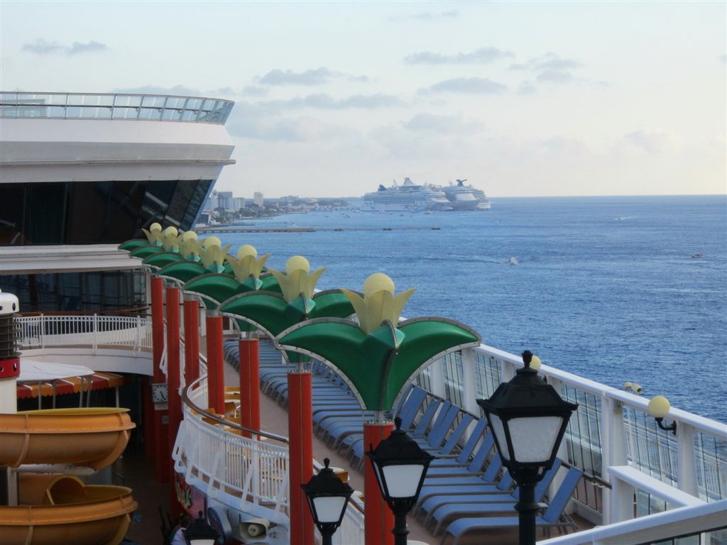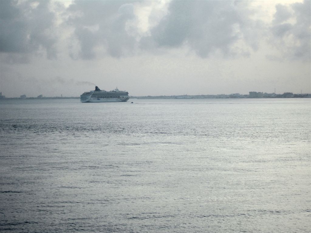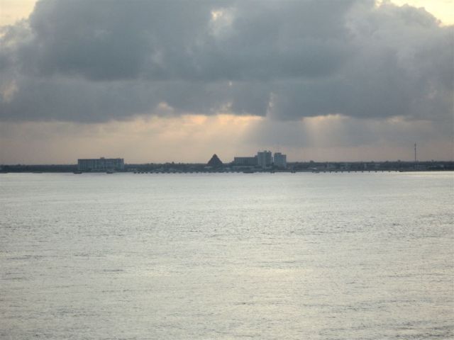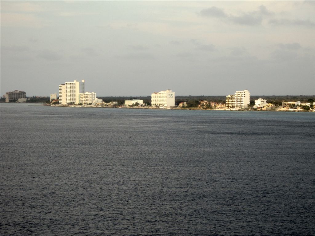 [Our first sighting of Cozumel. The locals pronounce it with a long “o,” but the tourists still said “cause-ah-mel” most of the time.]