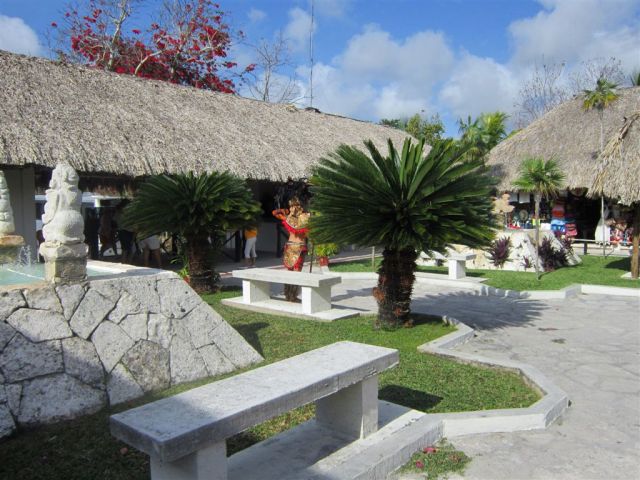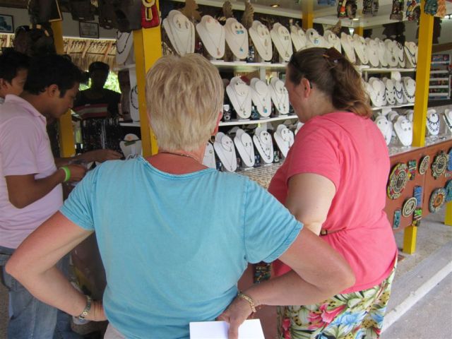 [Like any good ruin anywhere, first you have to navigate the commercial entry area. Buy stuff! Cozumel is noted for its black coral – and though it is obviously protected, divers can harvest coral that has broken off from natural causes, i.e., storms. I’m not sure how they monitor that. The supervisor did buy some jewelry here, as I recall, but it did not contain black coral.]