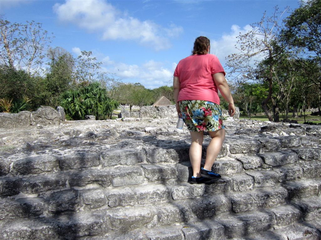 [Jami negotiates the steps. If you’ve ever been to ancient ruins, you know that the steps are always narrow and steep. As I recall the reason for that is that it you had to climb sideways using a switchback approach – and then the monument required a smaller footprint. OK, I don’t really recall why? Jami? (Editor’s note: The supervisor has subsequently advised that if you have to walk up and down sideways, you neither face the god directly, nor turn your back on her. And how could I not know that?)]