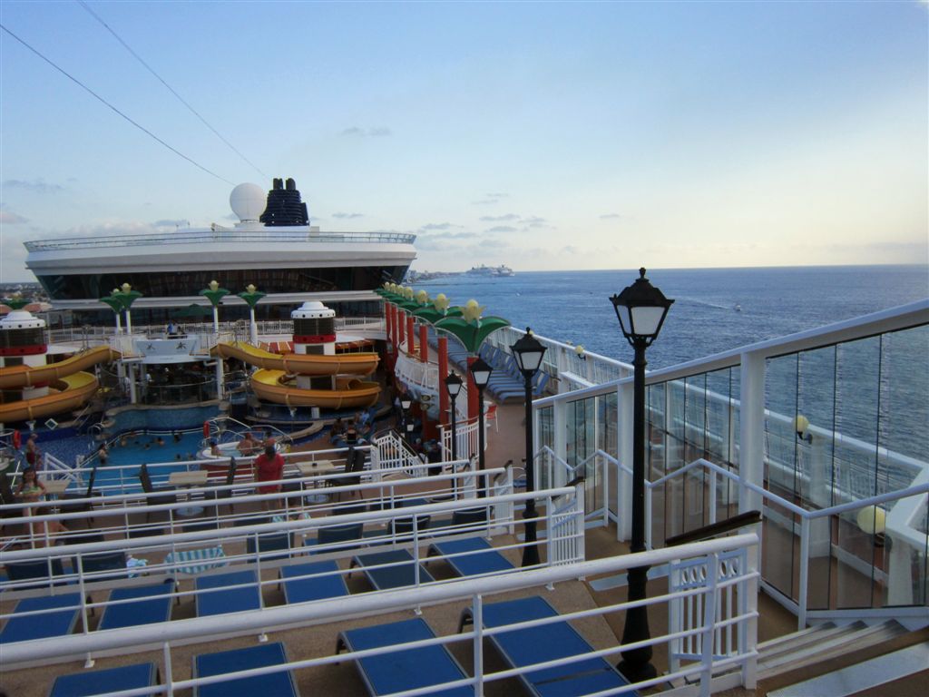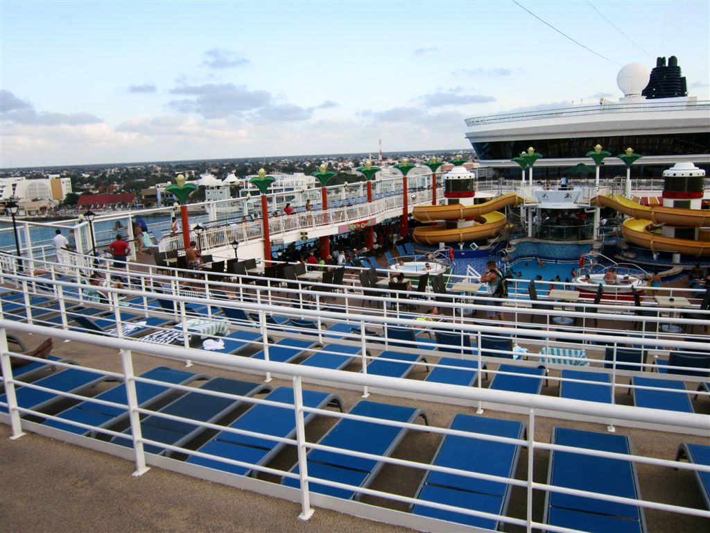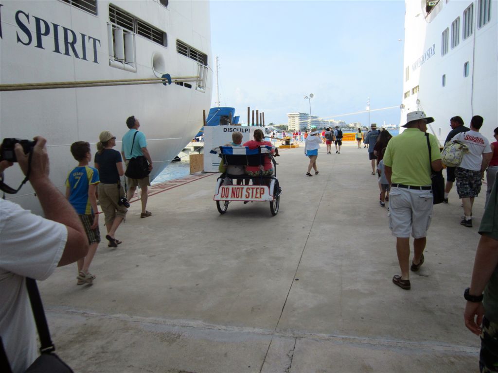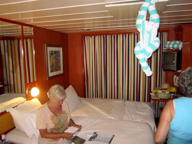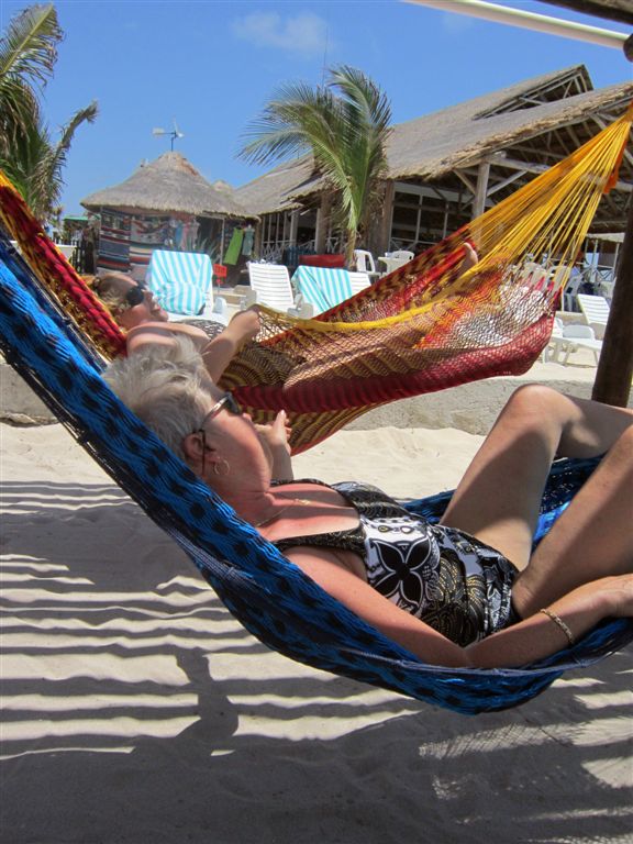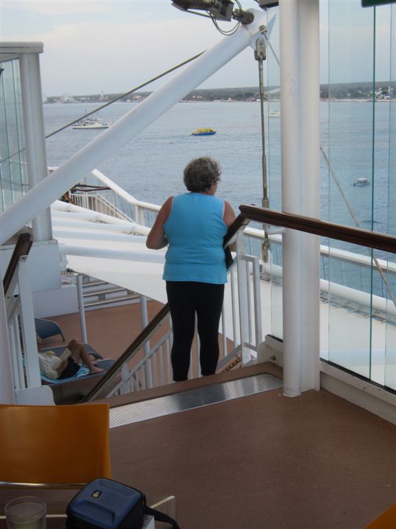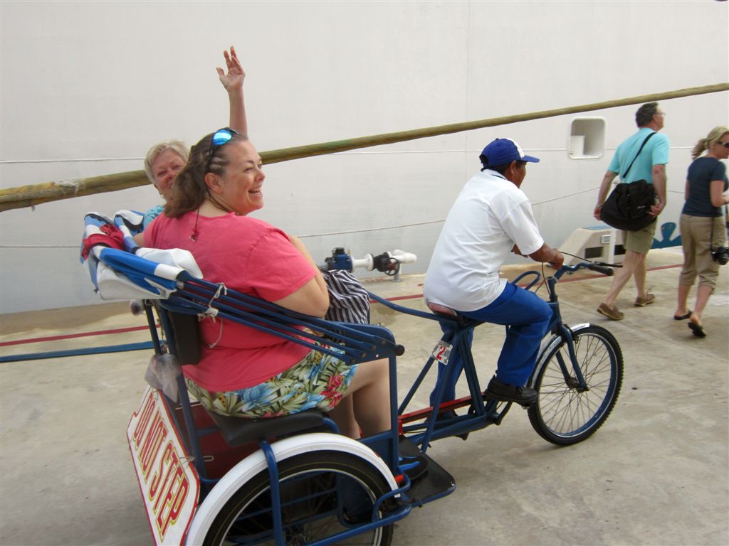 [Aforementioned conveyance – a swinging hammock. The girls were swinging and talking about the ship’s Dancing With the Stars show from the previous night. They said the runner-up should have won. The woman on the hammock next to Ruthie started laughing – she was the runner-up! 🙂 ]
