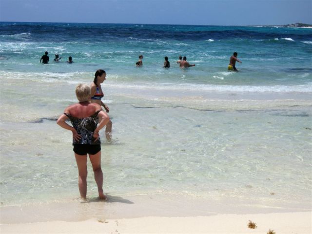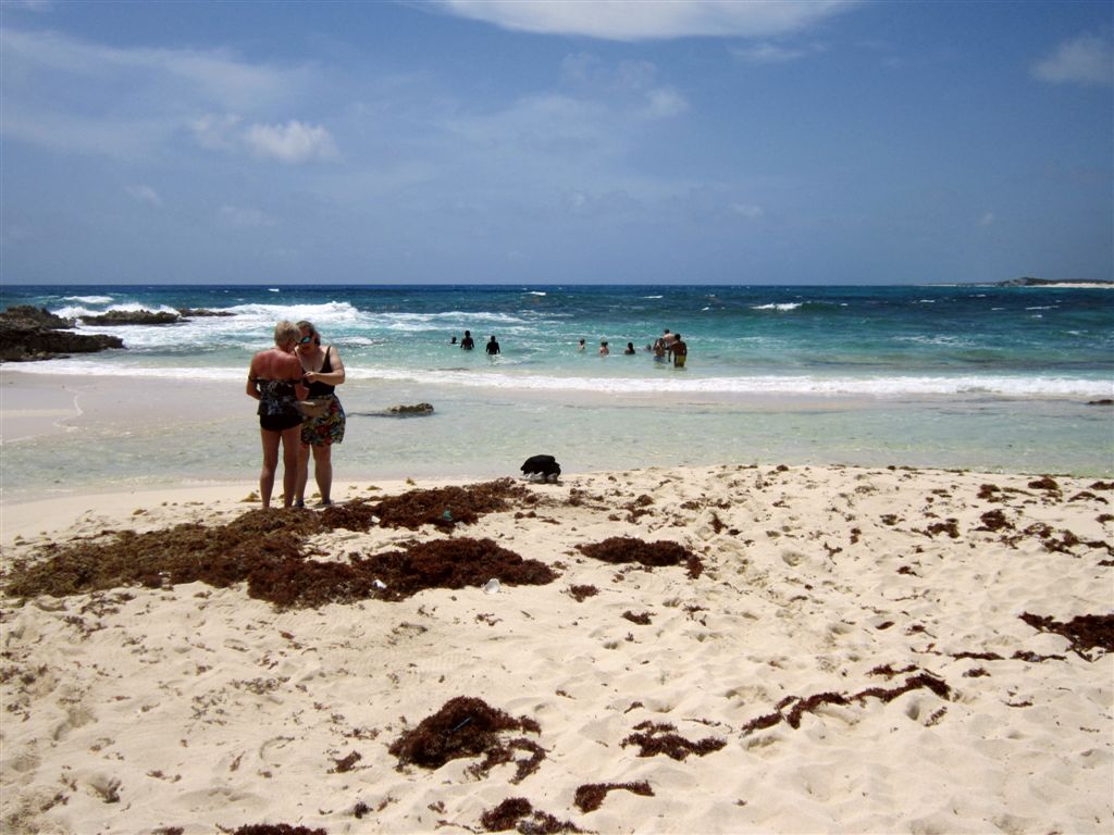 [Then it was on to the beach on the far side of the island. The guide asked if anyone knew why there were no tall buildings on this side. Our brilliant grandson answered immediately, “Hurricanes.”]