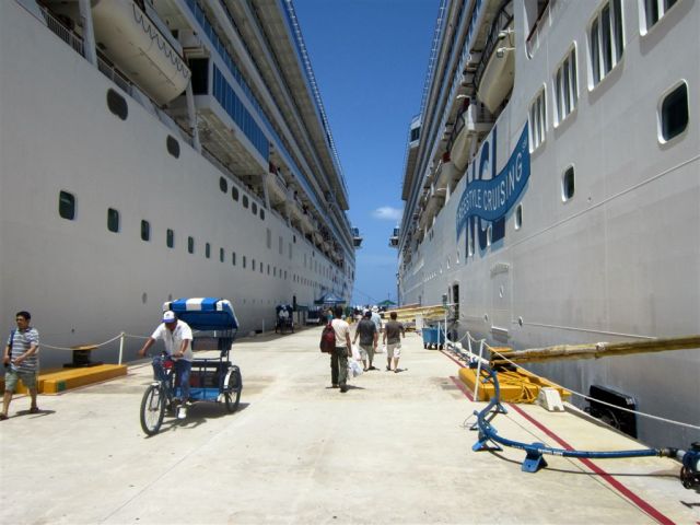 [As a major port-of-call, there may be as many as eight cruise ships here at one time. In it’s heyday before recent hurricanes, the number of cruise ships here would be well into double figures.]
