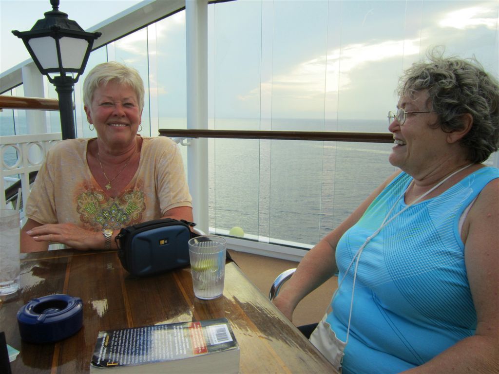 [The Biddies reminisce about the cruise as we head back to Tampa.]