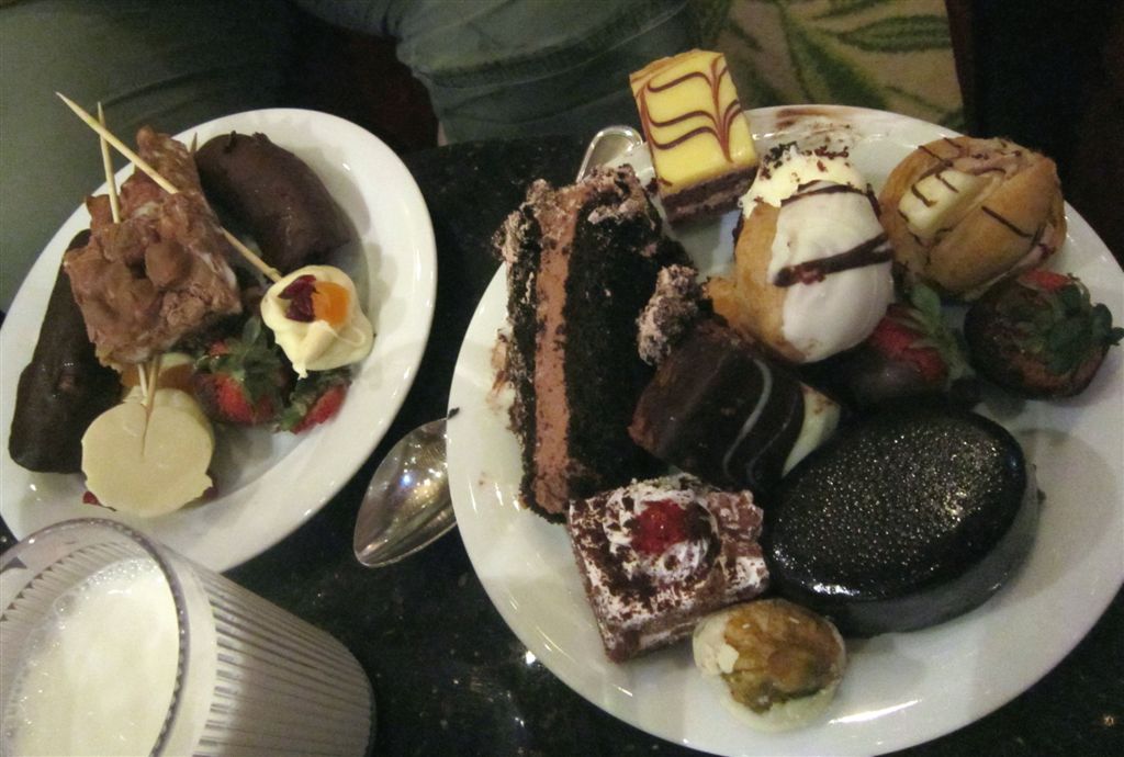 [It was chocolate night on the ship – just in case your calorie intake had been running a tad low. These were the kids’ plates. Rita got one plate for the three of us – it lasted into the following morning.]