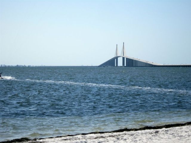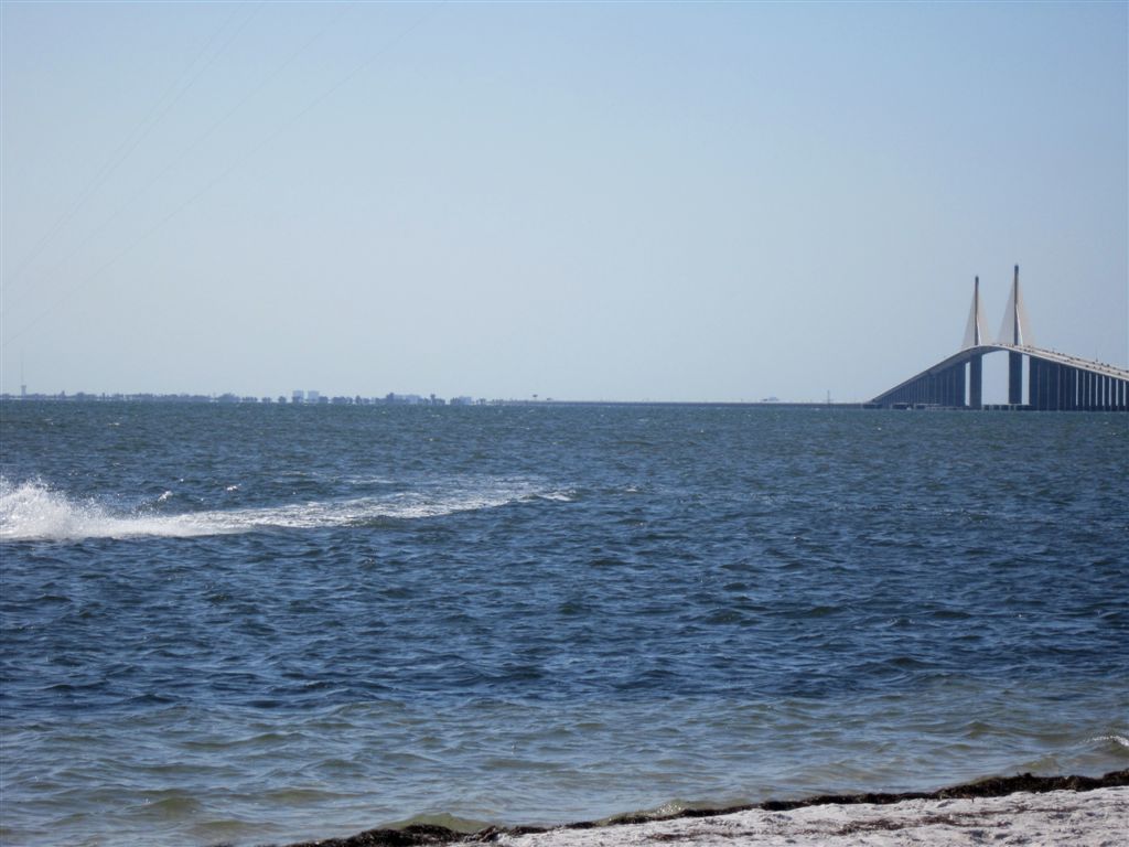 [Then The Biddies and I got a rental car – but not without the usual trip hassles, this time for Rita – and went in search of Ft. Myers, about 2 1/2 hours south of Tampa. First photo op stop along the way was for the Sunshine Skyway.]