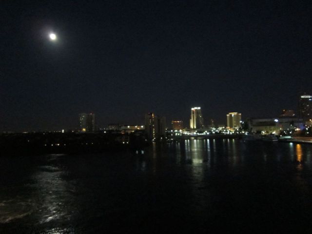 Tampa. We arrived back in port the following morning under the moon’s Full Monty of the city. The photo ops were abundant.