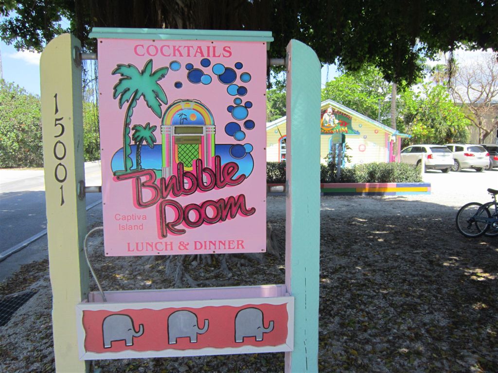 [Tour guide Rog suggested we dine at the Bubble Room. Captiva has limited parking and pull off spots, so most of our photos there were in this restaurant. Ha! We went to see the beach at the end of the island, but the line of cars just waiting for a spot to open in the beach’s parking lot was daunting.]