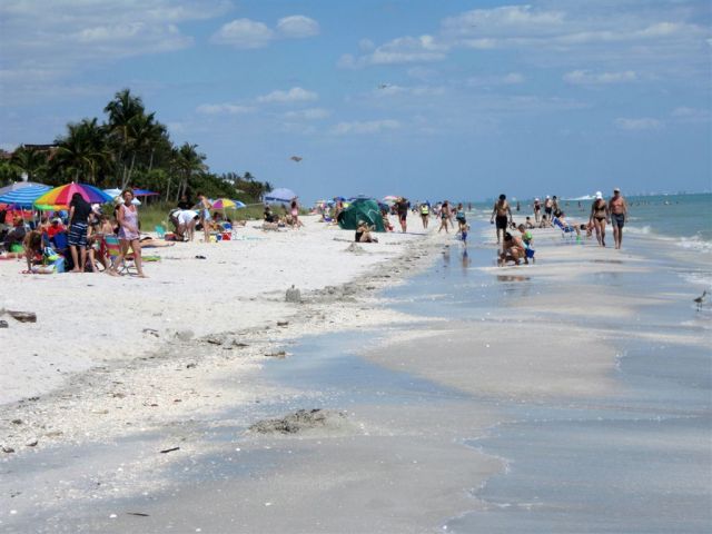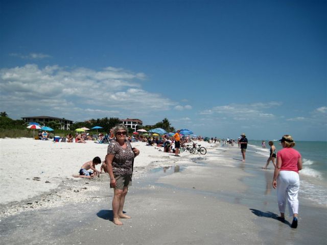 [Sanibel Island beach – all reportedly the best shell-searching beaches in the country.]