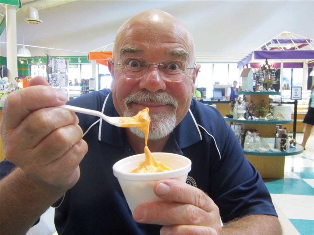 [When you’re “of age,” two things are crucial when you’re on the road – availability of restrooms and . . . availability of orange ice cream dispensers. Rog was delighted we found this place for him in his neighborhood! 😉 ]