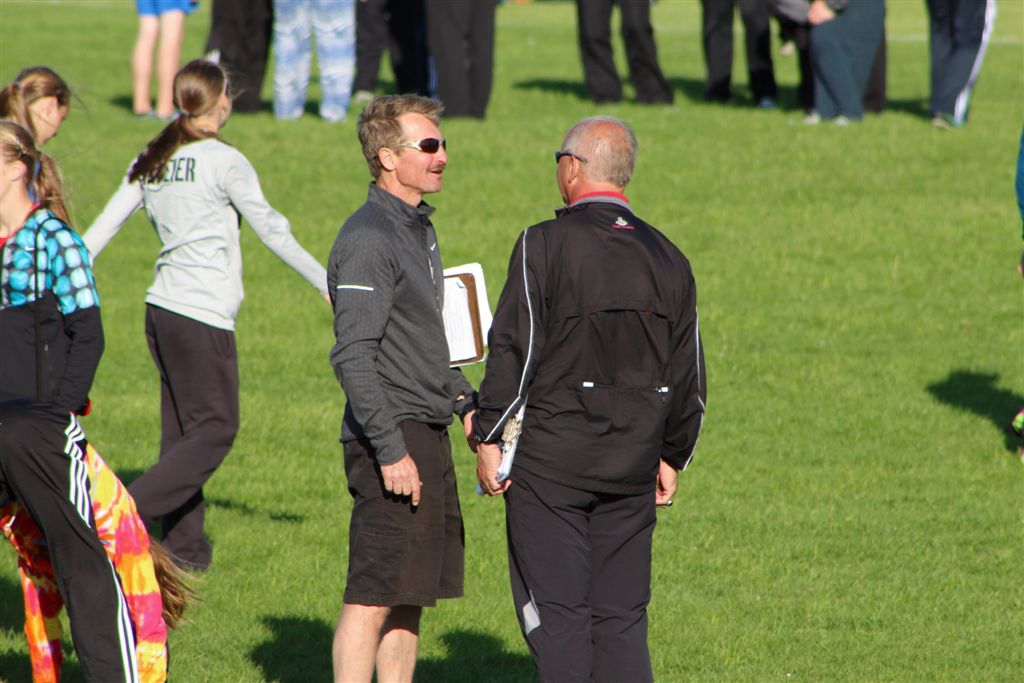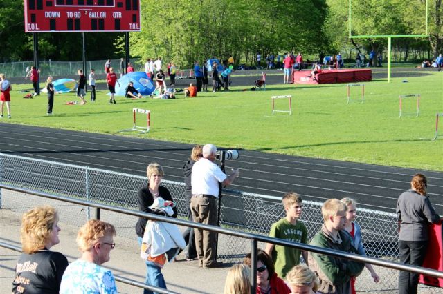 This was Jamie’s last home meet before heading off to the U on a track scholarship. She holds the school record for both the 1,600 and the 3,200 (she has won state in both), and generally just runs the 800 for speed work. But she hoped to get the school record in the 800 as well. She gave it a good shot – setting a personal best – 2:17:39, but missing the school record by about a second. It was not a good day for record attempts as you can hear on the following video of her race, it was a tad too breezy!!