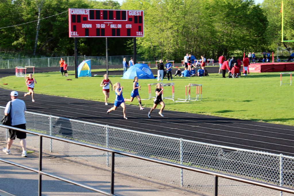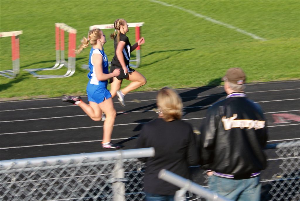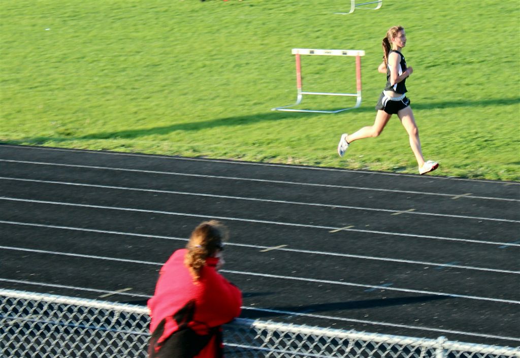 Time for the annual report from track and field. I had certain events in mind as I sped from the softball game back to the high school [see previous post] for a tri-meet with Sartell and Willmar. I had checked with running coach Mark Nelsen to get starting times and realized I could stay for the entire softball game and still catch Jamie Piepenburg (above) in the 800 and Megan Hasz in the 3,200 – and throw in some of our hockey girls, Shanee’ Herd and Melissa Drown, in their events, and possibly Jamie in the 4 x 400 relay. I knew I would miss Bethany Hasz in the 1,600.