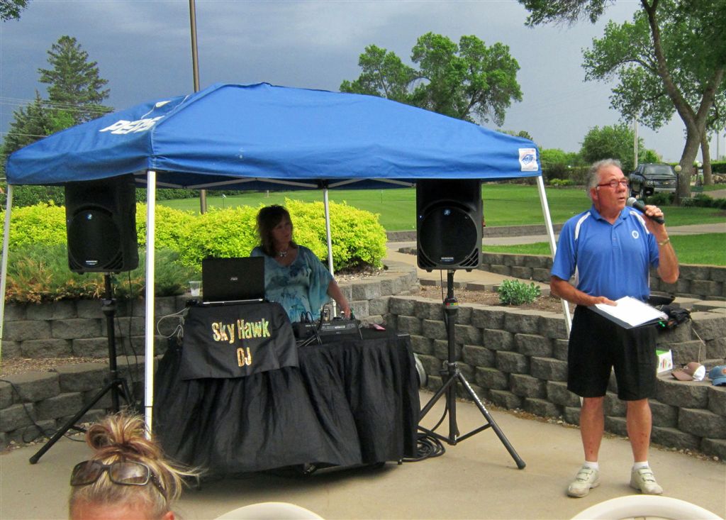 But first, it is spring in Minnesota . . . and with the weekend approaching, thus do the black clouds adhere to the local “laws of Nature.” Friday night began with a meet and greet the new members of the golf club – followed by dining, grilling out on the patio, with a DJ, with club president and Super Fan Roger Riley making all the announcements and introductions as the background sky threatened.