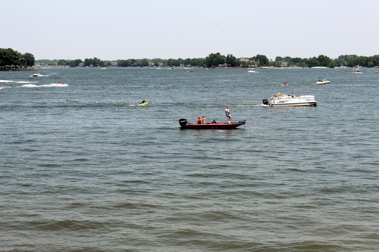 [Meanwhile, boats start to appear on the lake – a 90+ degree day will do that.]