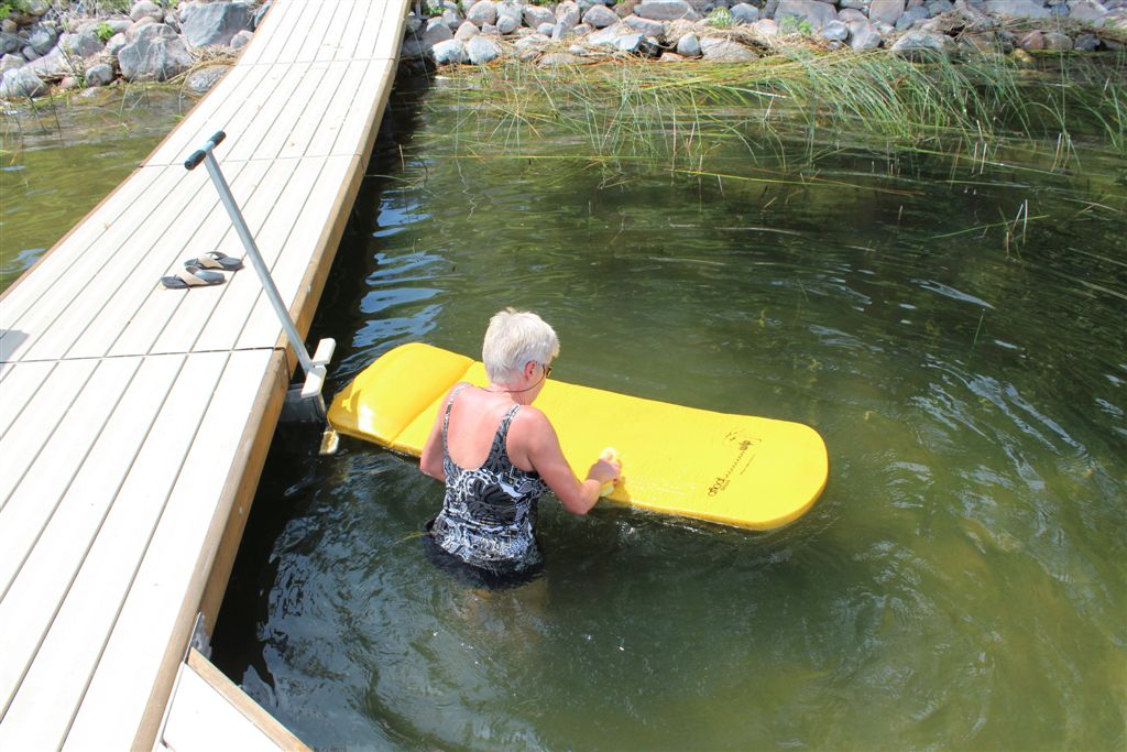 [The supervisor prepares a floatation device. She will miss her fellow Biddy this year as they enjoyed floating together.]