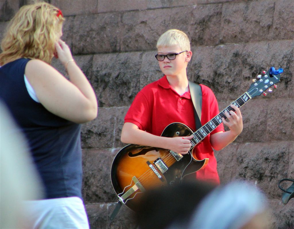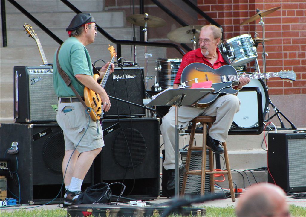 [Then we had to hustle back to Alex for the Red Willow Arts Coalition’s Tribute to Mel Lamar on the courthouse lawn. Mel is noted for having taught every guitar player in the county over the last something, something years.]
