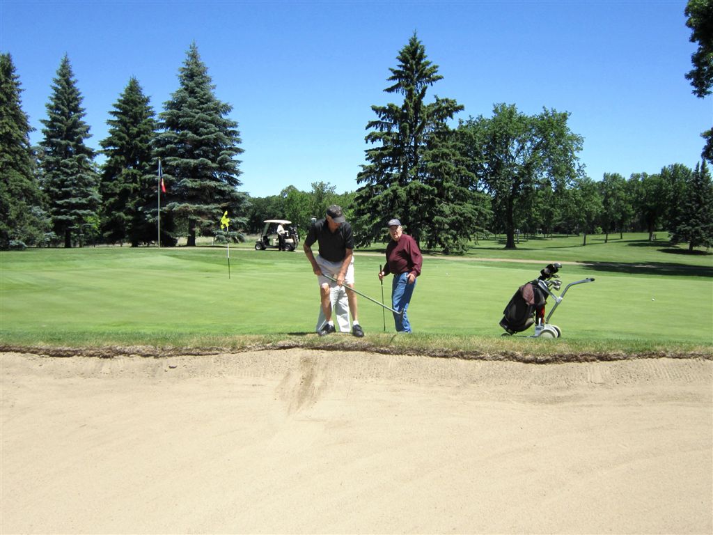 Martin and Warren joined us all to play the back 9.  Warren played in the group ahead of us – we played with Martin in the following group.  When we arrived on the 17th tee, we could see Warren had hit into the left-side trap.  With trusty Canon in hand, I sped up the hill to catch the action with the following story in mind: