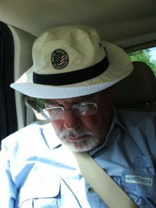 Anyway, by the time I reached my quarry, Warren, and two of his playing partners, were on their hands and knees just trying to rake the ball out of the steep side of the trap.  I captured Warren with a bemused look on his face – and then had my photo taken with the guy who is still my hero.  🙂