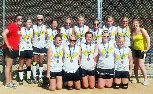 [By special request, coaches Ally Teclaw (l) and Dani Bany (r) directed the Alexandria girls’ U-14 softball team to a tournament title. Ally and Dani were teammates on the Cardinals 2010 high school team, a Super Fan favorite. (Echo Press photo)]