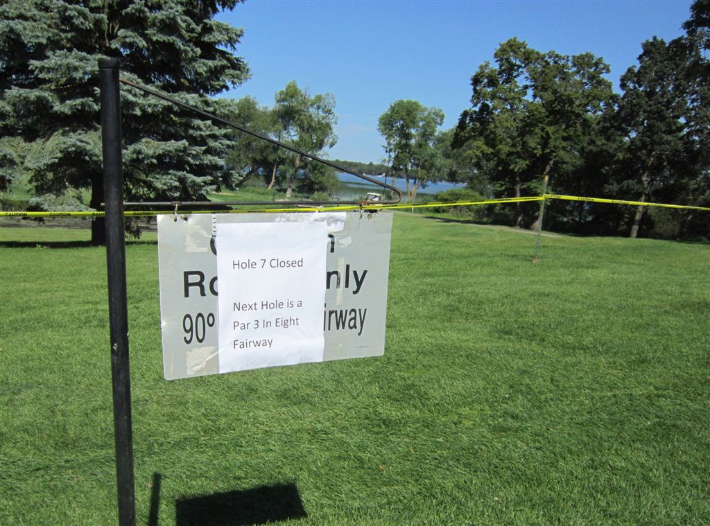 [During reconstruction, the par-4 8th hole will be a par-3 temporary 7th hole. The temporary 8th hole will be a par-3 from behind the original 8th green to a temporary green beside the 9th tee.]