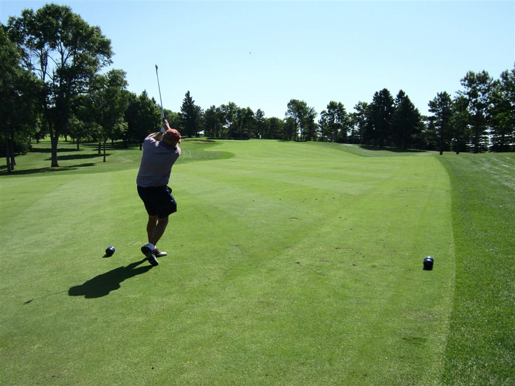 [Dusty Johnson tees off on the temporary No. 7 to the original 8th green.]