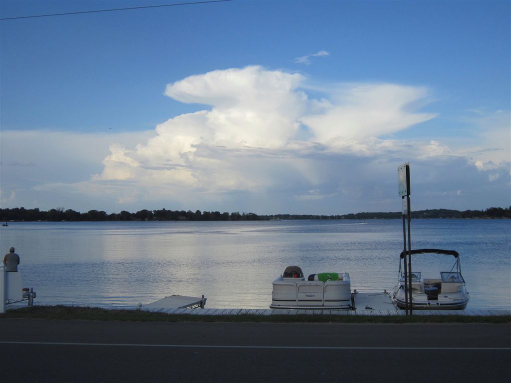 Cloud: On the way from home to Bug-A-Boo, I shot the same cloud over a ‘bean field, Lake Carlos, and Lake L’Homme Dieu. Yes, I’m easily entertained.