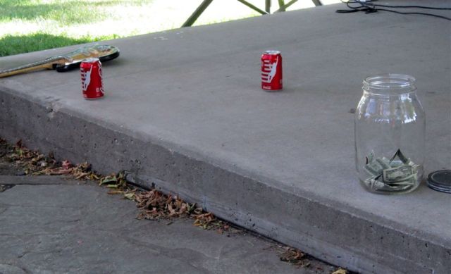 [When we arrived at Bug-A-Boo Bay, Bruce (yes, the same Bruce who was playing with Cassie & the Bobs the previous night) was entertaining his fan club by the shores of beautiful Lake L’Homme Dieu.]