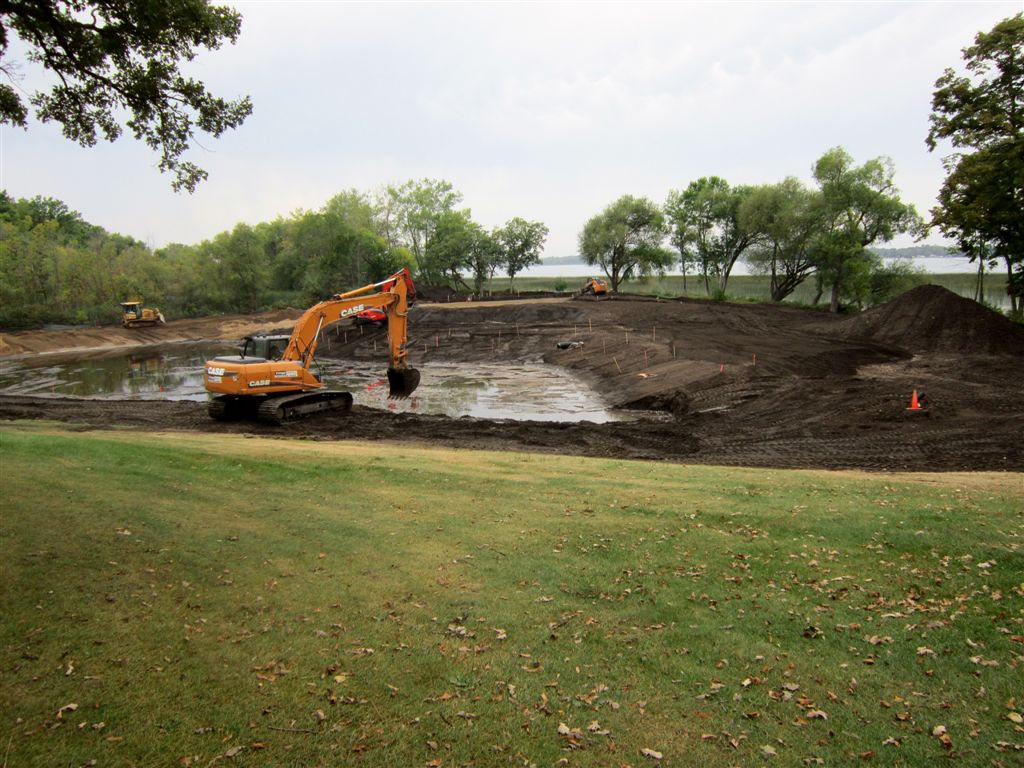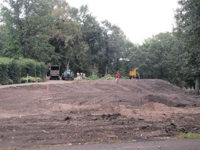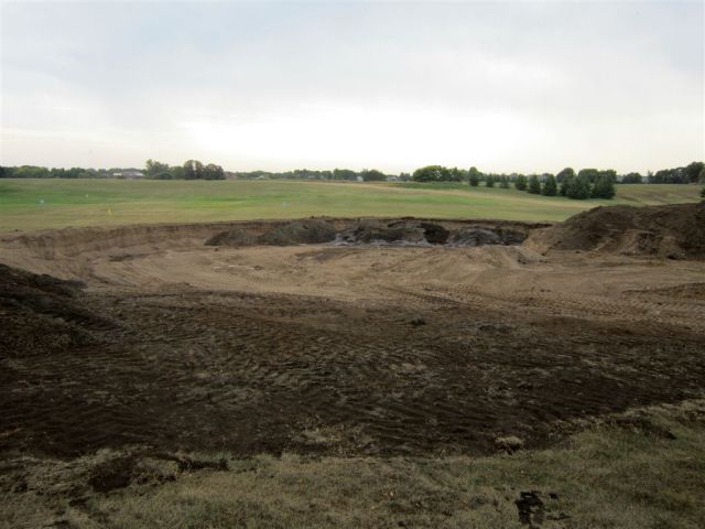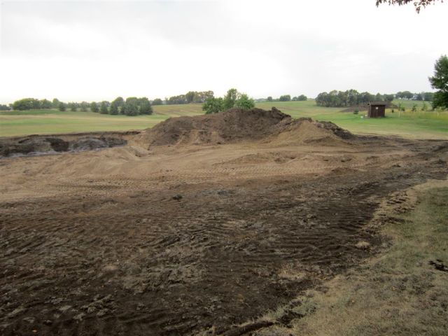 [Just south of the 9th tee, on the practice range, is the “muck” burying site – the stuff being dug out of the bottom of the old 7th hole water hazard. There may be golf balls in there from the 40’s!]