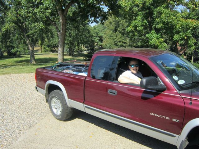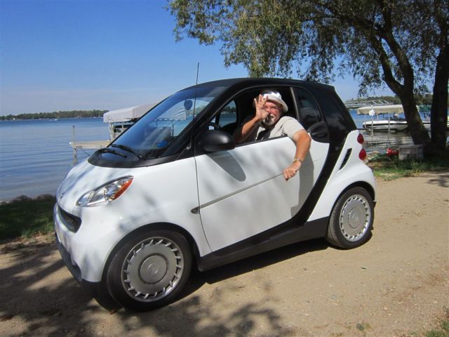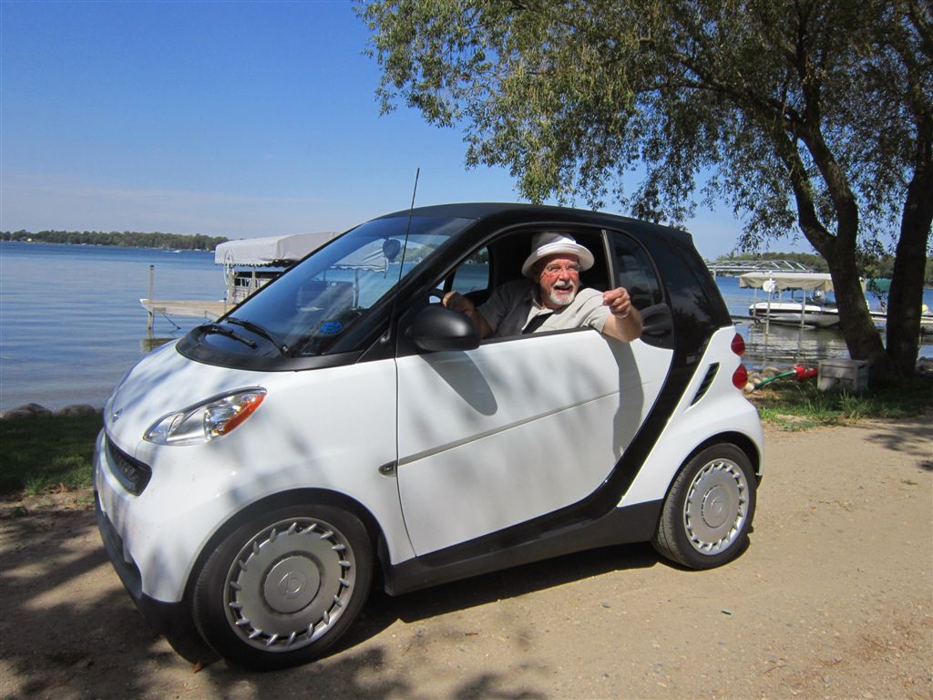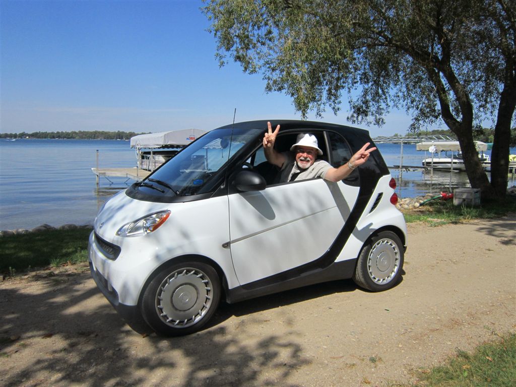 [Yup, it’s your aging correspondent, making the rounds in the cute little car. We dropped by Camp Ballantine to say goodbye to Mary and Crazy Dave who were leaving the following morning – the first of the snowbirds to leave. They had an excuse – something about a European cruise, as if that could compare with cruising beautiful Lake Darling!]