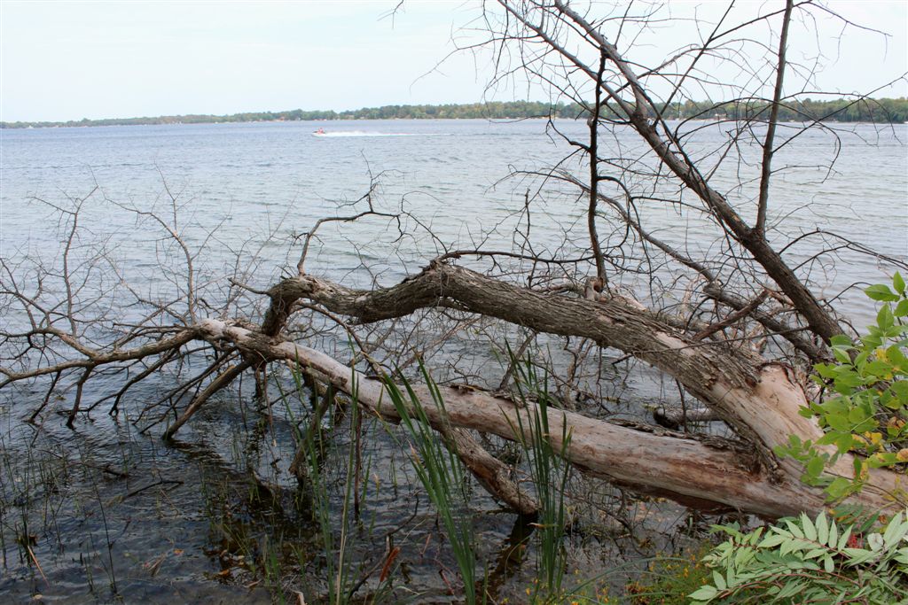 [We lost a couple of lakeside trees at the end of last summer – probably as a result of the high water then. A lot of lakeside trees died last year. We recently had them felled into the water to provide habitat.]