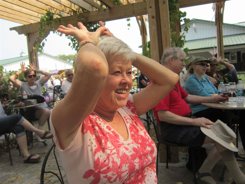 The supervisor and I still, still recovering from the excitement of company and Dorset, did not make it to Friday’s stomp and Saturday just kinda lolled around the house in a semi-comatose state. Sunday was the last day . . . and to my memory, we had never missed a Stomp (well, maybe those like three years in a row when it was hit with deluges that turned the parking “lot” into a muddy quagmire – then this year, fighting the drought, hiking in from the parking “lot” through mini dust storms), so we rounded up all the materials necessary for the adventure (“bring our own chairs, because it will be packed”), planned on getting there before noon when it began (Skilly & Duff on the Marquette Stage), and somehow, in spite of ourselves, hit a bit of a traffic snag as we arrived precisely at noon. In spite of her bad foot, the supervisor immediately bolted toward the event center, not waiting for the tractor trolley, and lugging our chairs in case all the seating was gone. Of course it wasn’t -and we had a lovely afternoon just listening to music and watching the world go by.