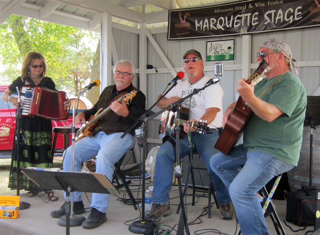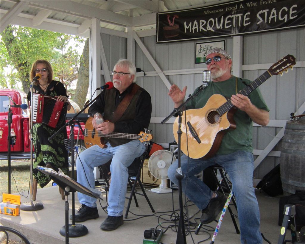 [After 3 hours with Skilly & Duff, we went to the hippodrome (that’s what I still call it?) to see Tucker’d Out, a group we like from Fargo and generally only get to see once or twice a year. The day before, we heard this place with SRO with wine tasting and music. I guess when you get down to the last hour of the last day, most are home taking naps!]
