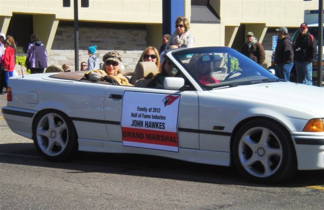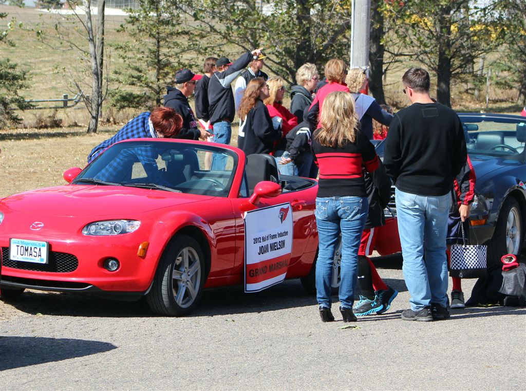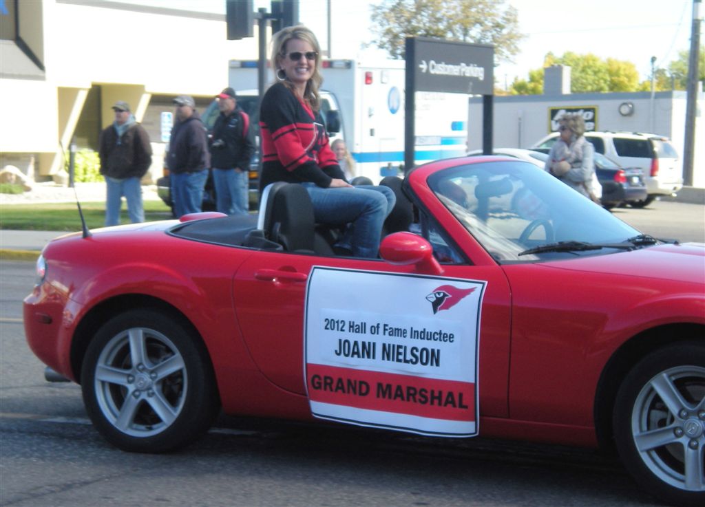 [Oh, here’s Hall-of-Fame grand marshal, Joani Nielson, better known to Super Fans as a hockey mom.]