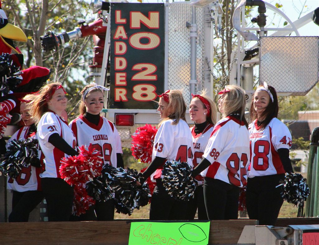 [Trying the keep an eye on the cheerleaders so they don’t disappear in the “dip.”]