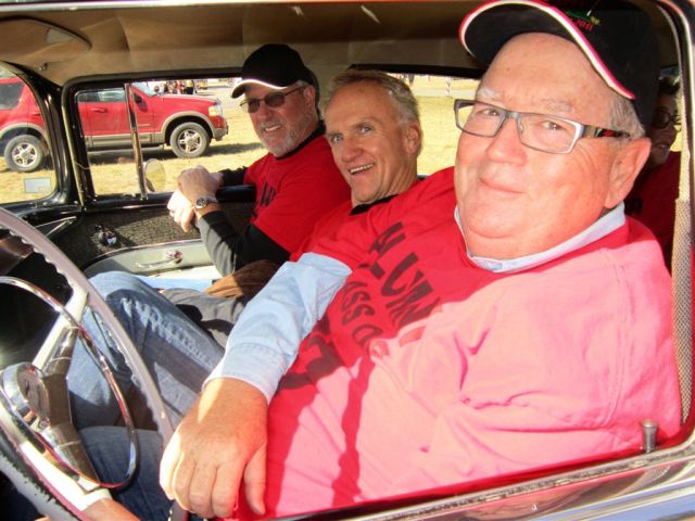 [The other passengers in the Grundeimobile. Tom Lempka, Doug Drexler, and Al, all Class of ’67. Cute?]
