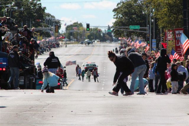 [Somewhere behind the teeming masses was either a grand marshal or Homecoming royalty.]