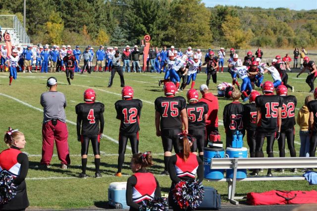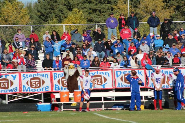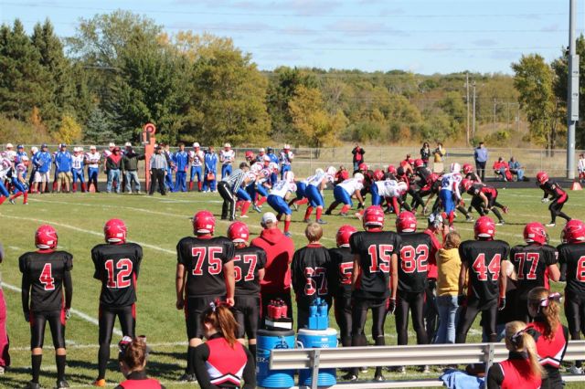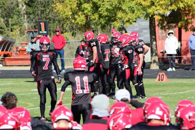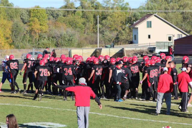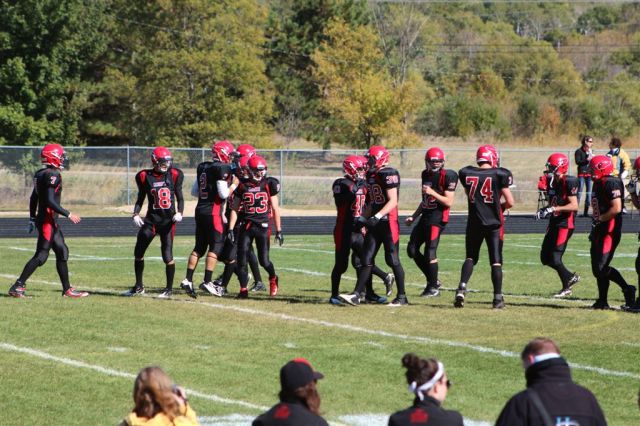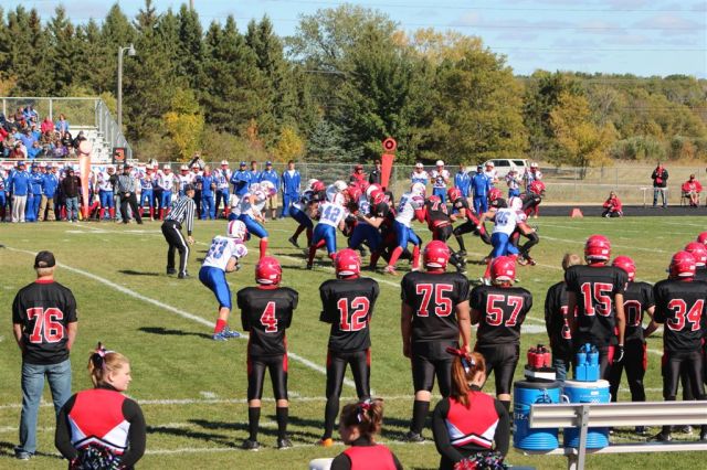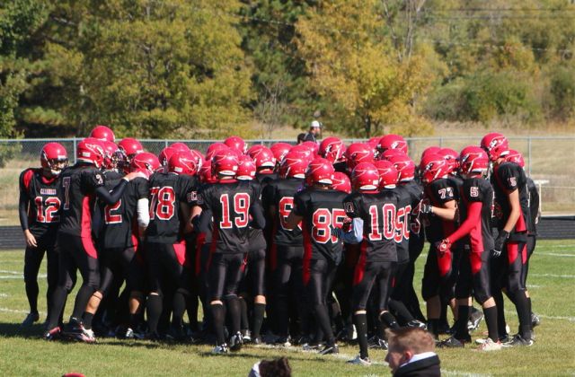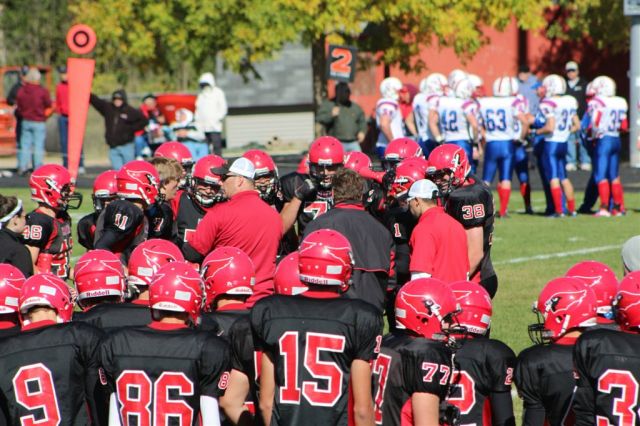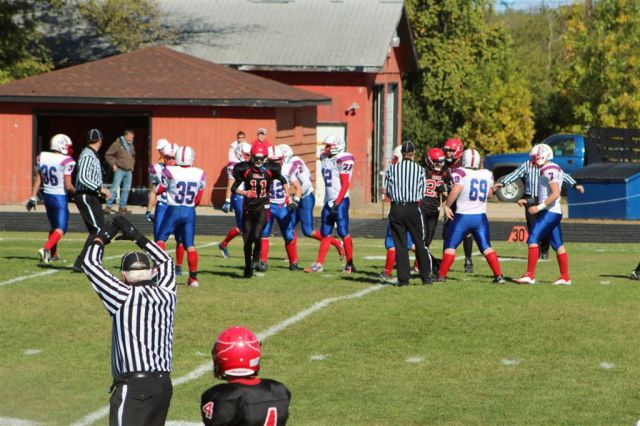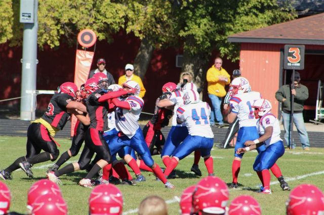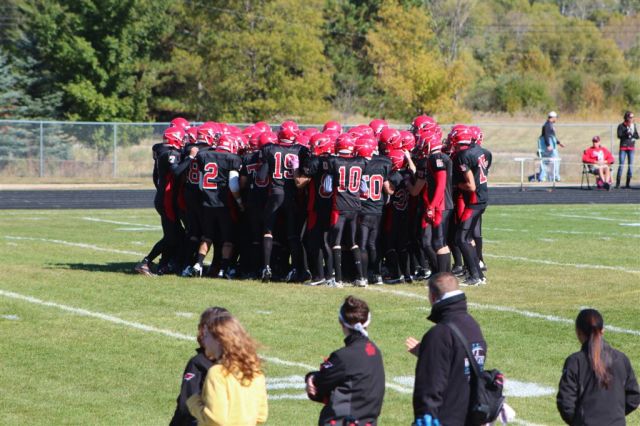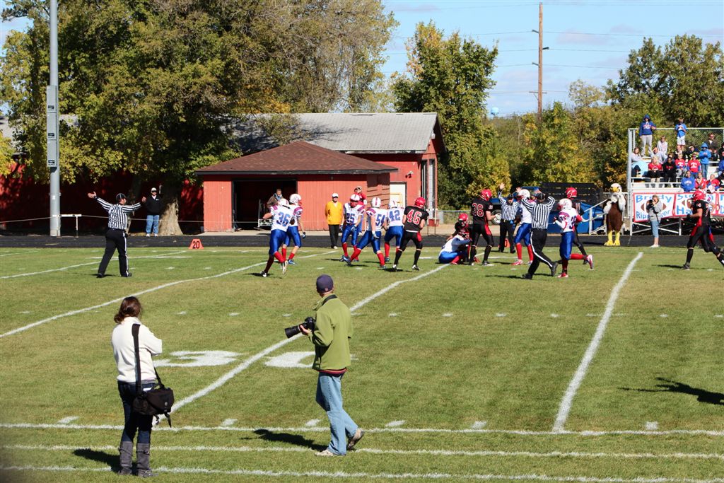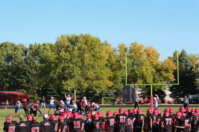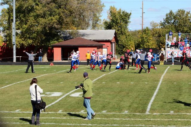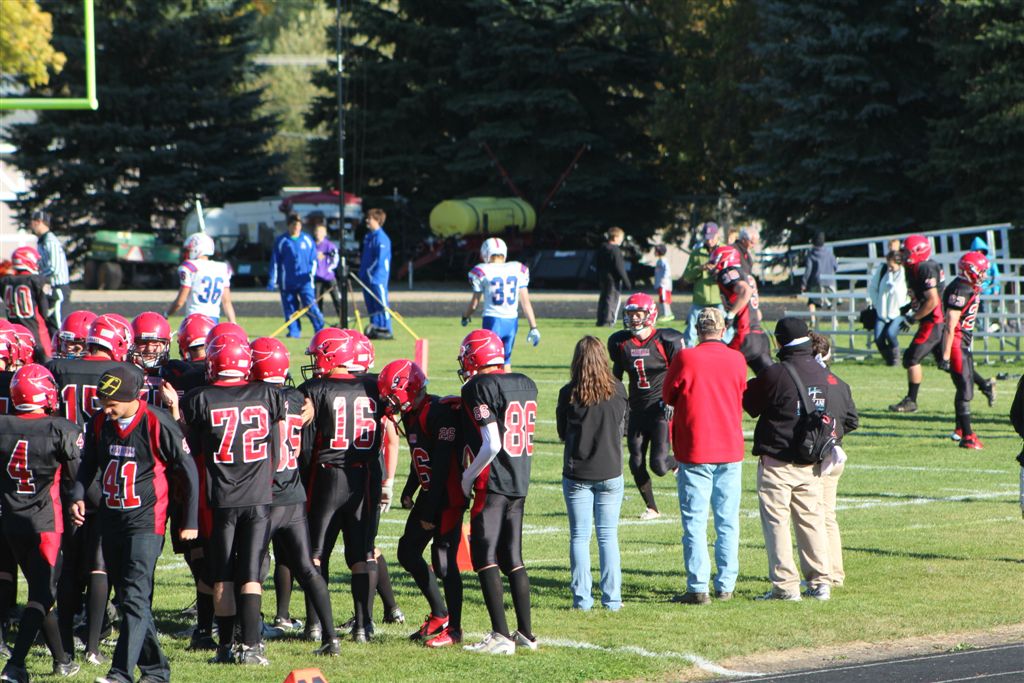 [It’s over!! 🙂 Good game team – it should provide confidance for the future. We weren’t surprised to hear junior Aaron Steidl was named defensive player of the game, though we remembered him as a running back. At defensive end, I think he had 11 tackles and 2 sacks. Senior lineman Chase Duwenhoegger was named offensive player of the game, leading the blocking for the running game.]