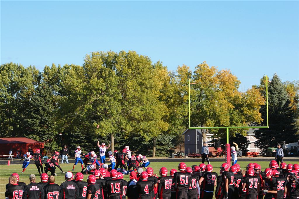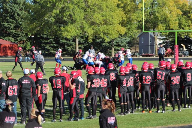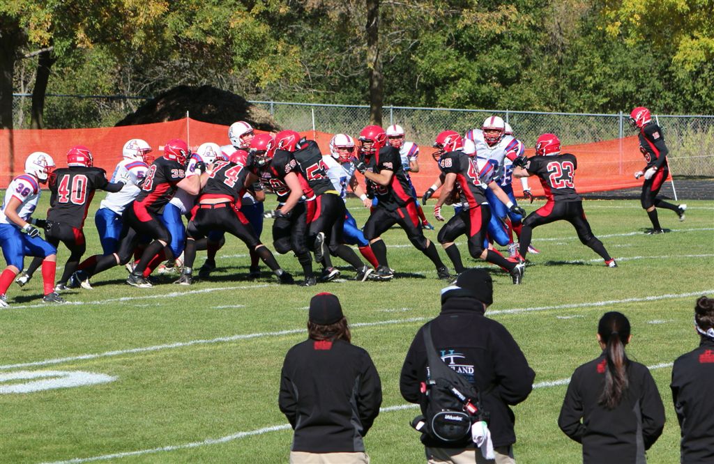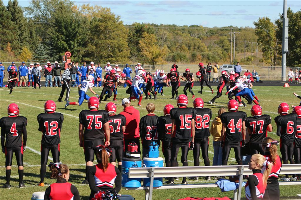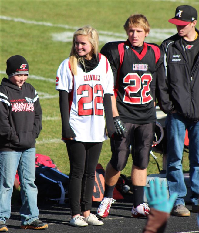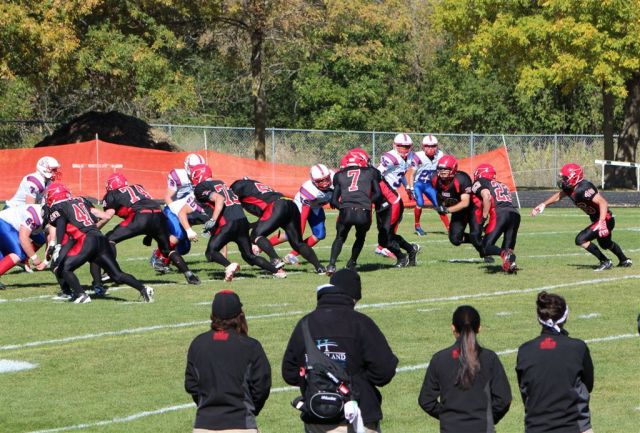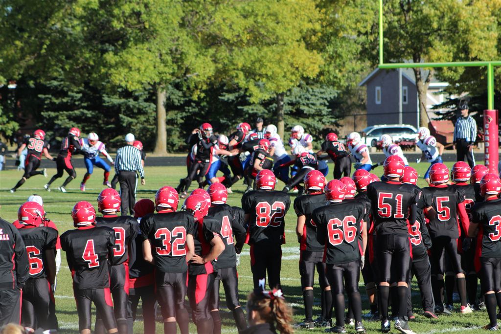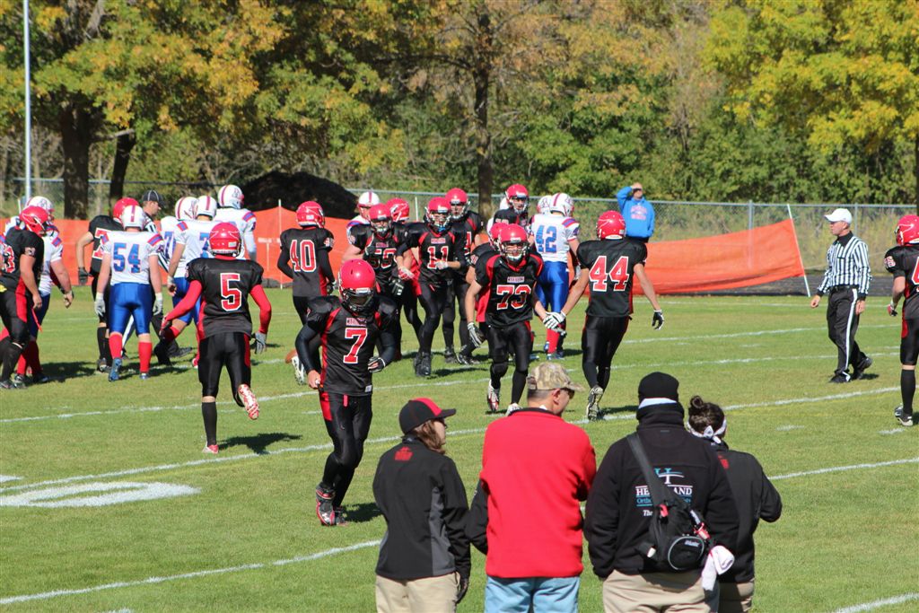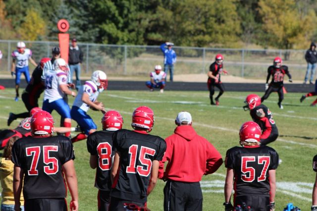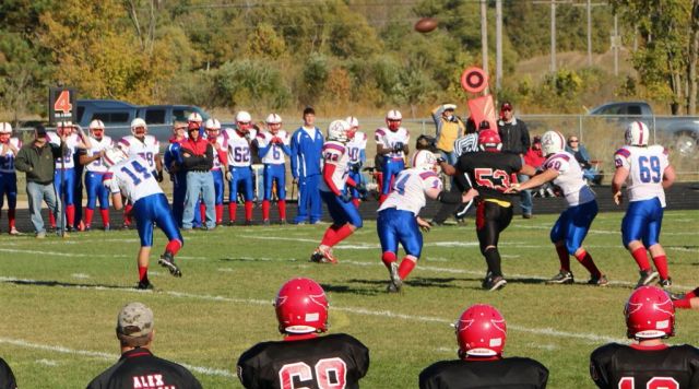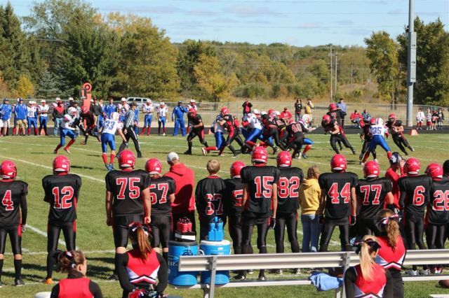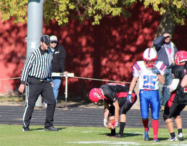 [It’s over!! 🙂 Good game team – it should provide confidance for the future. We weren’t surprised to hear junior Aaron Steidl was named defensive player of the game, though we remembered him as a running back. At defensive end, I think he had 11 tackles and 2 sacks. Senior lineman Chase Duwenhoegger was named offensive player of the game, leading the blocking for the running game.]
