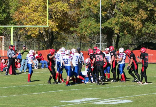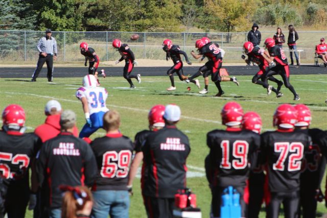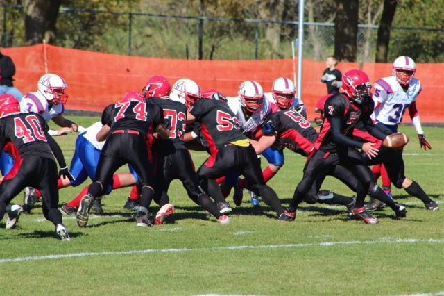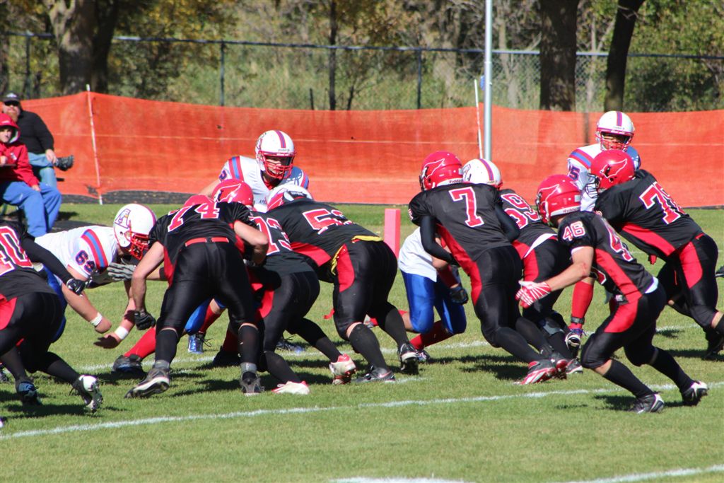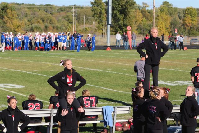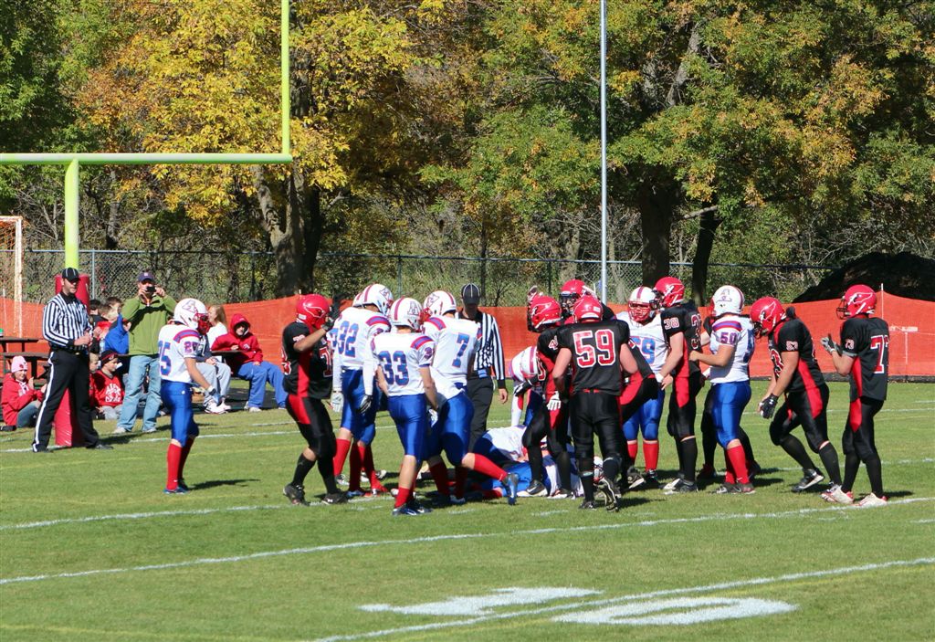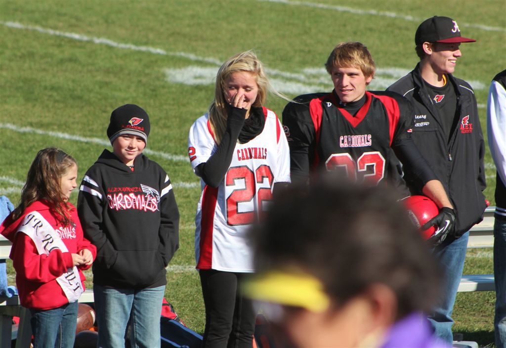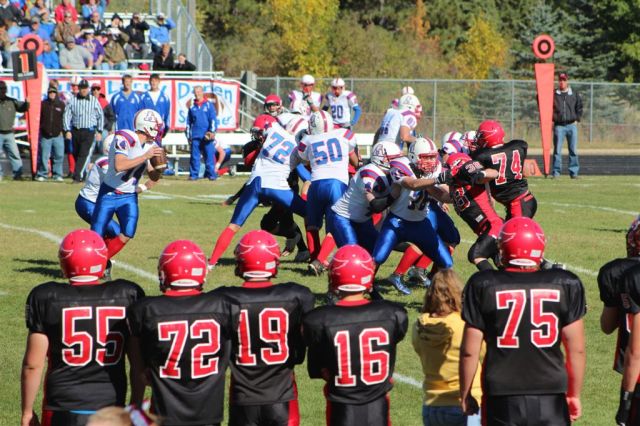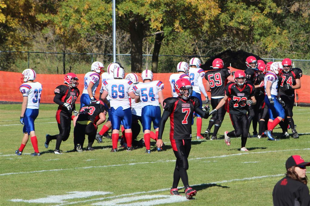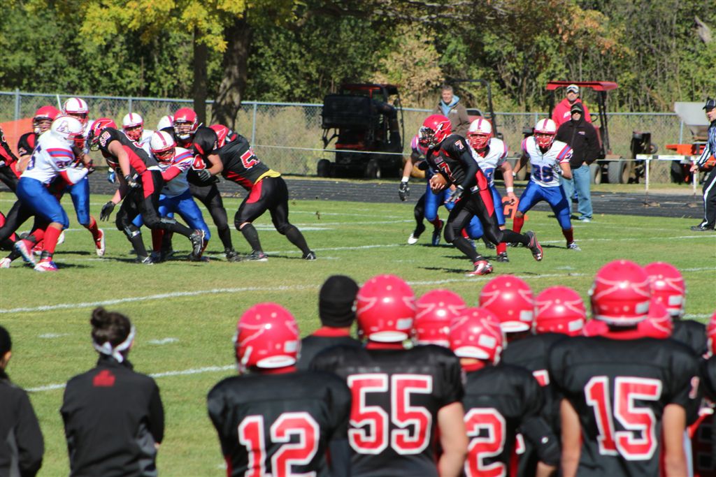 [It’s over!! 🙂 Good game team – it should provide confidance for the future. We weren’t surprised to hear junior Aaron Steidl was named defensive player of the game, though we remembered him as a running back. At defensive end, I think he had 11 tackles and 2 sacks. Senior lineman Chase Duwenhoegger was named offensive player of the game, leading the blocking for the running game.]